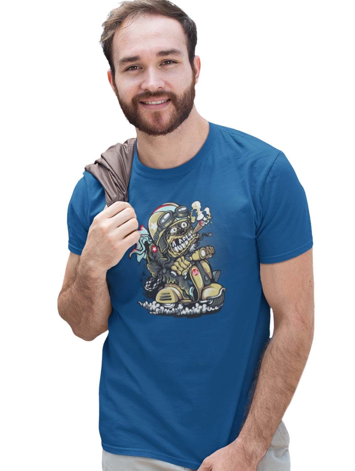 Ride Loose, (BG Blue) Blue Round Neck Cotton Half Sleeved T-Shirt with Printed Graphics