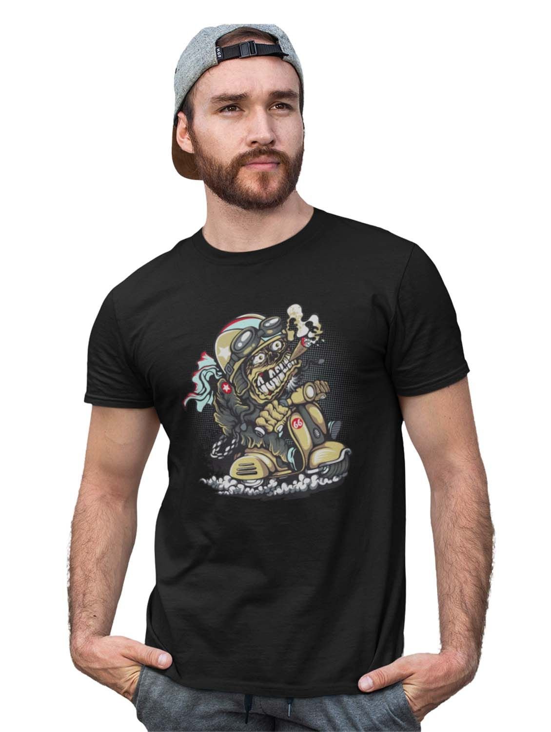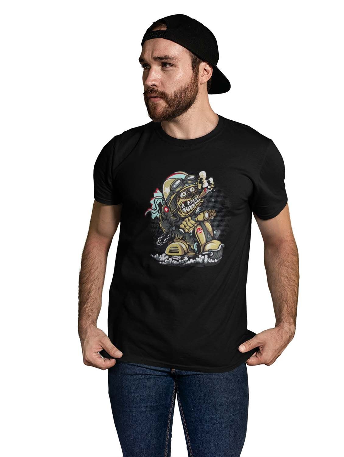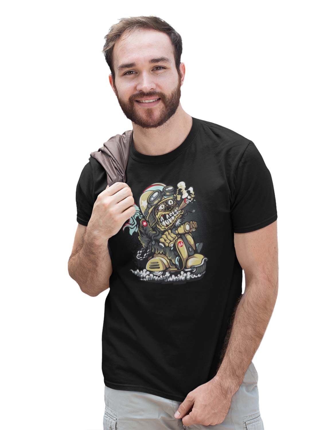 Demon- The Rider Black Round Neck Cotton Half Sleeved T-Shirt with Printed Graphics