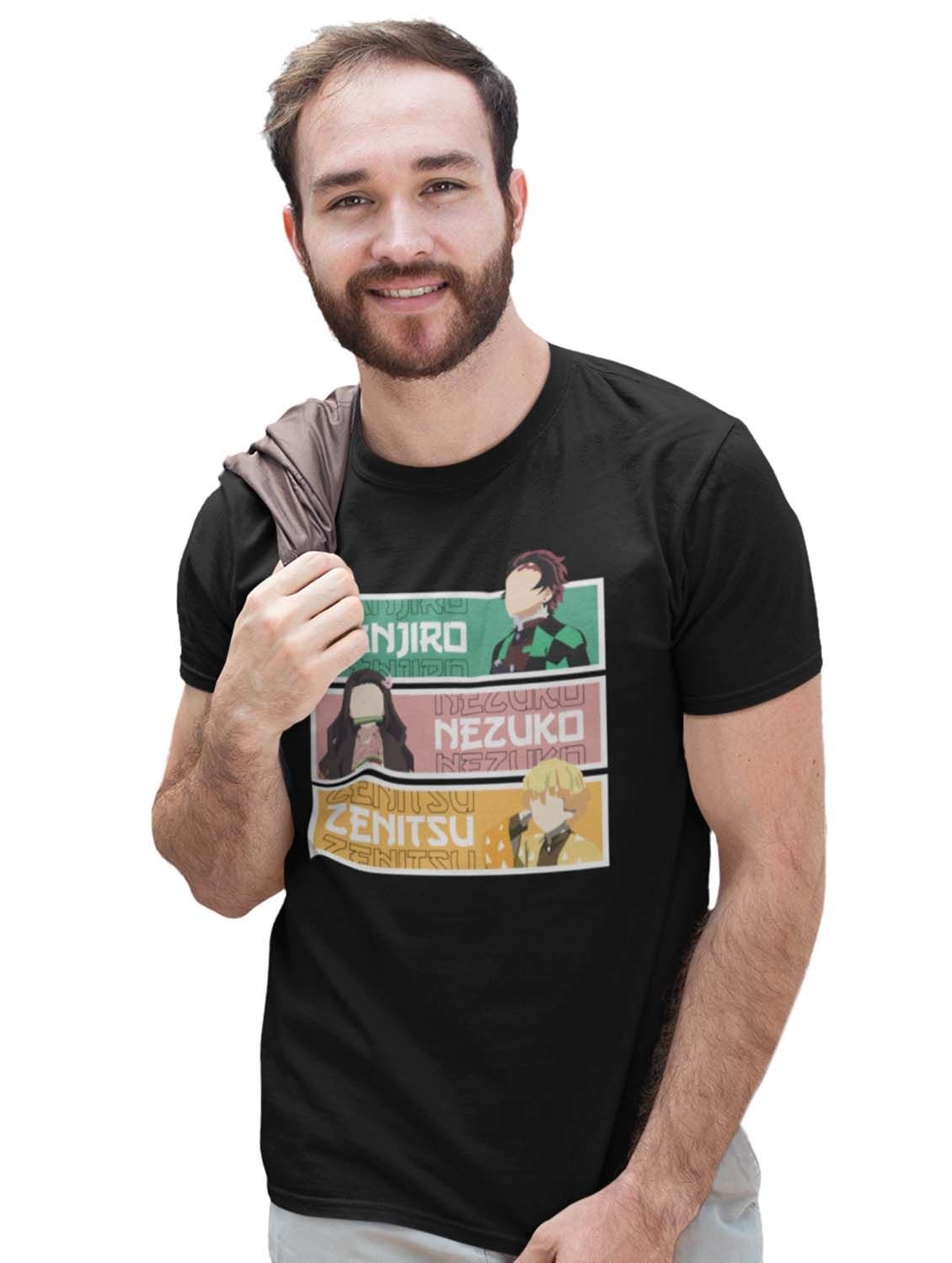 Demon slayer characters - Black printed cotton t-shirt - Comfortable and Stylish Tshirt