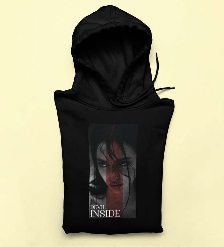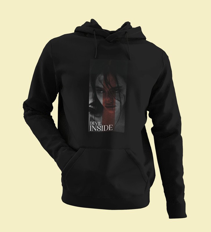 Devilish, City Pulse: ExploreBlack Trendy Front Print Hoodies - Men's Street Style
