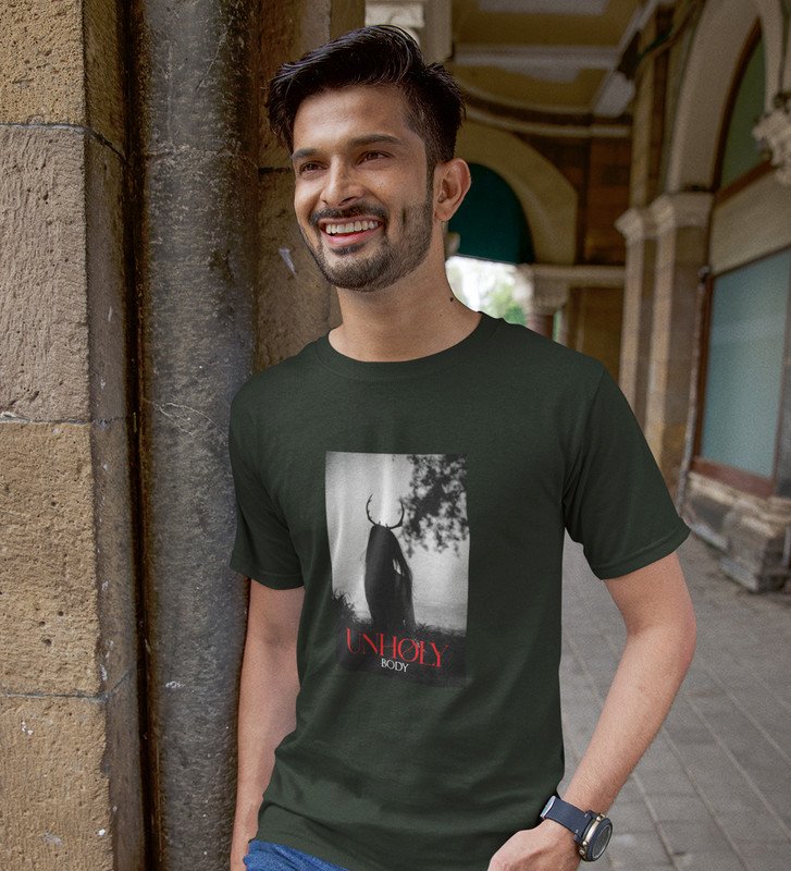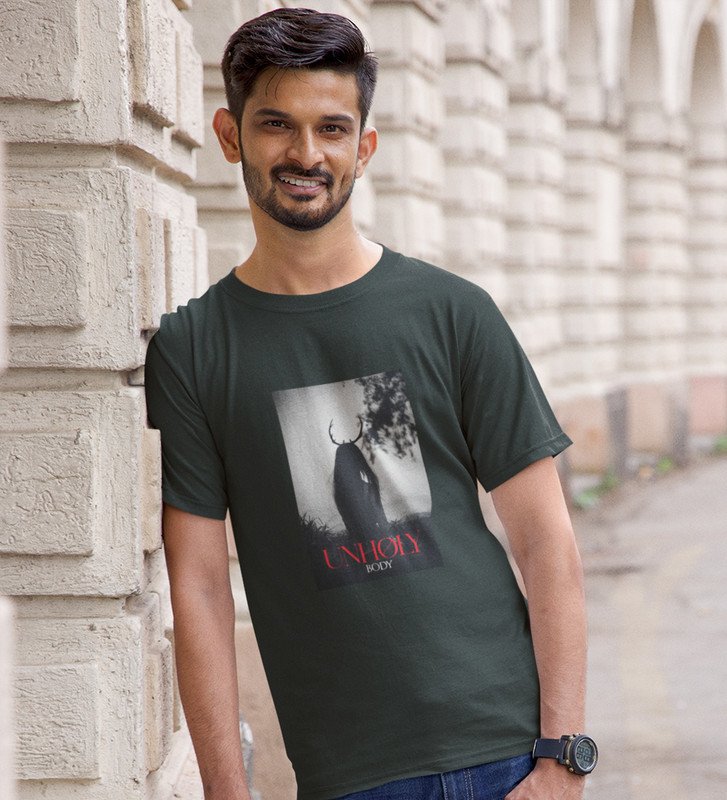 Devil's Body, Street Fusion: Green Trendy Front Print Round Neck T-Shirt - Men's Edition