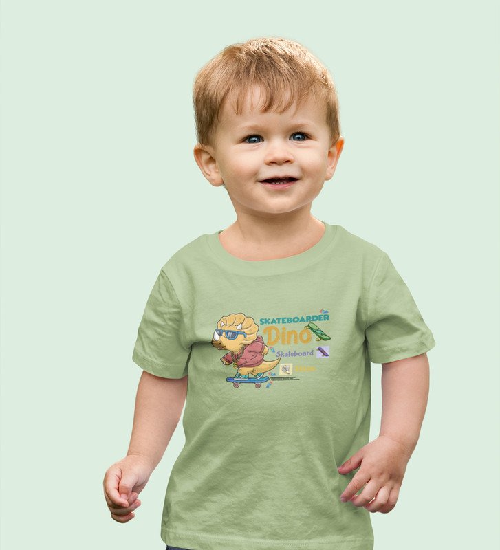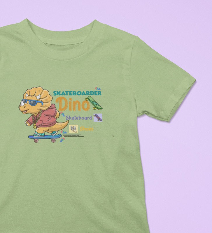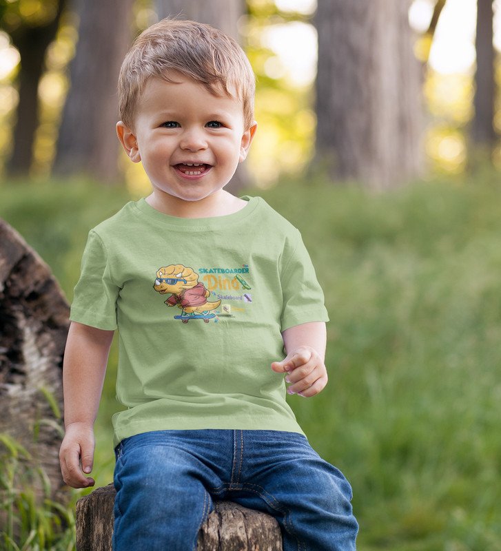 Dino Skater, Printed Cotton T-shirt (olive green) for Boys