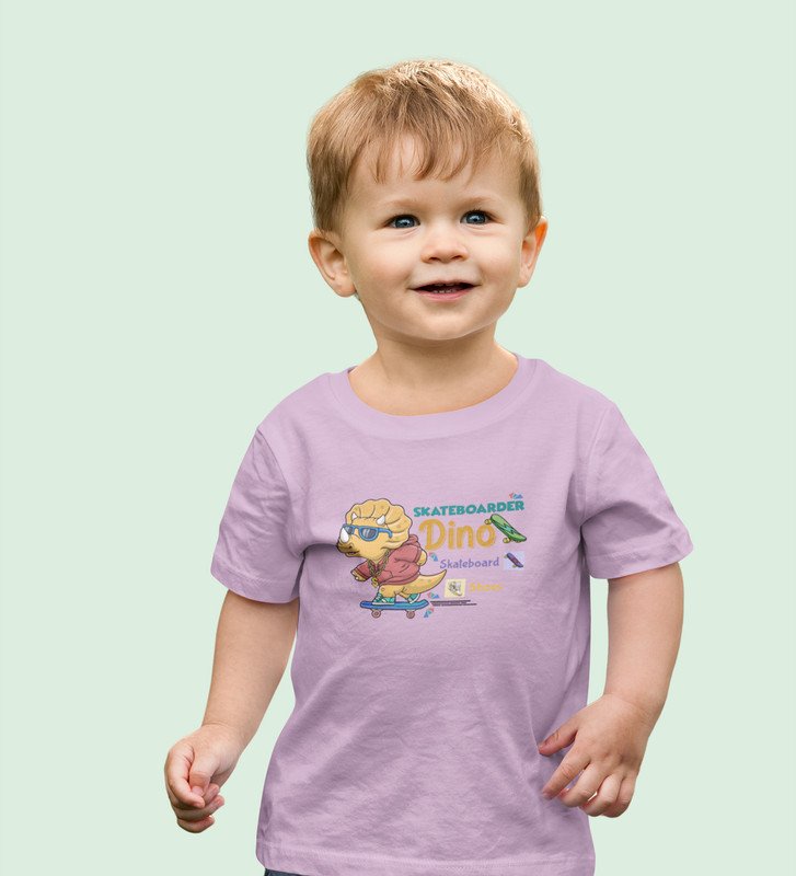 Dino Skater, Printed Cotton T-shirt (Purple) for Boys