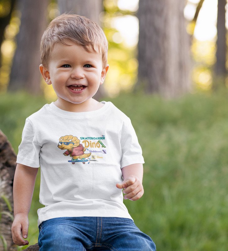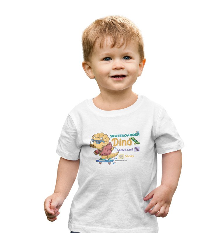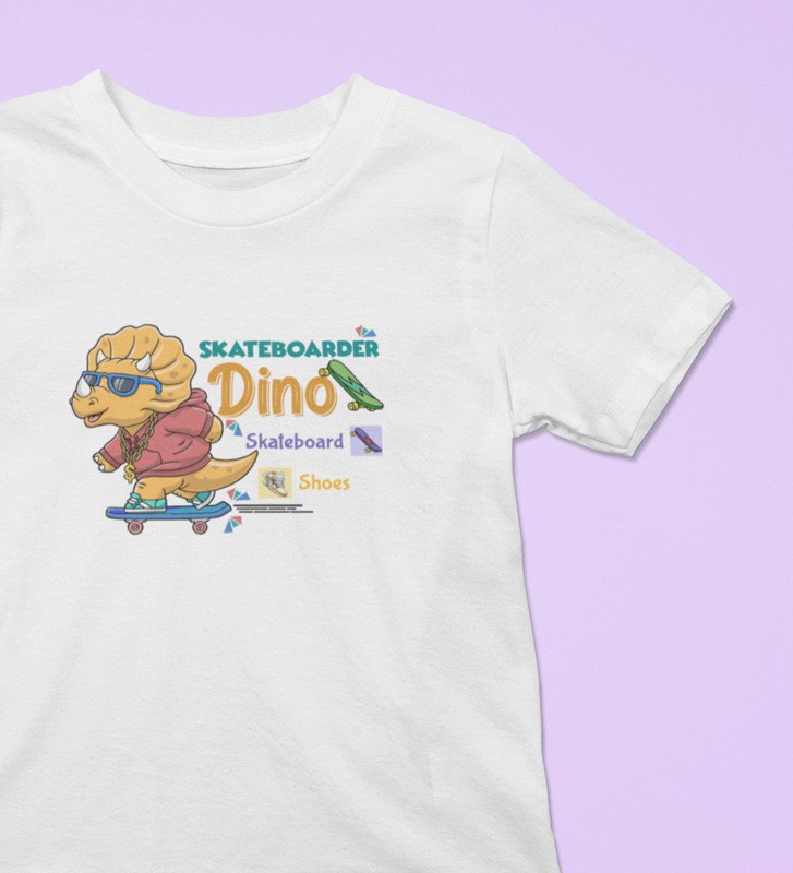 Dino Skater, Printed Cotton Tshirt (White) for Boys