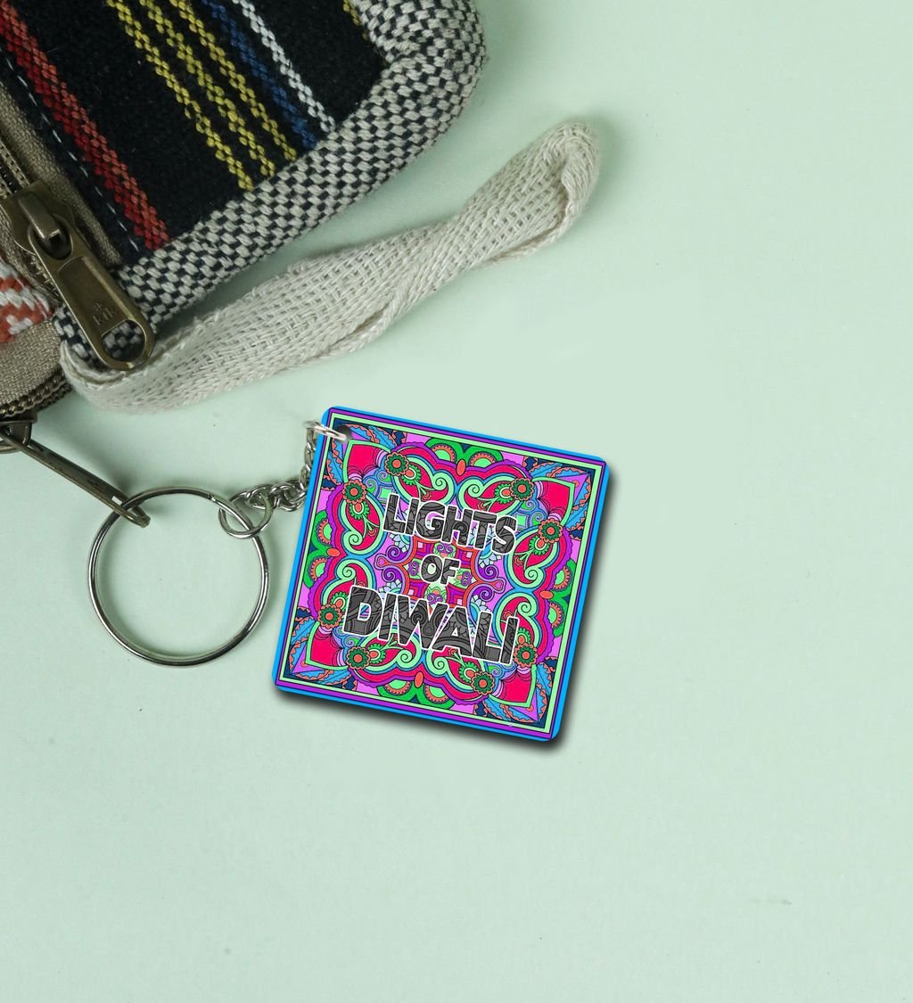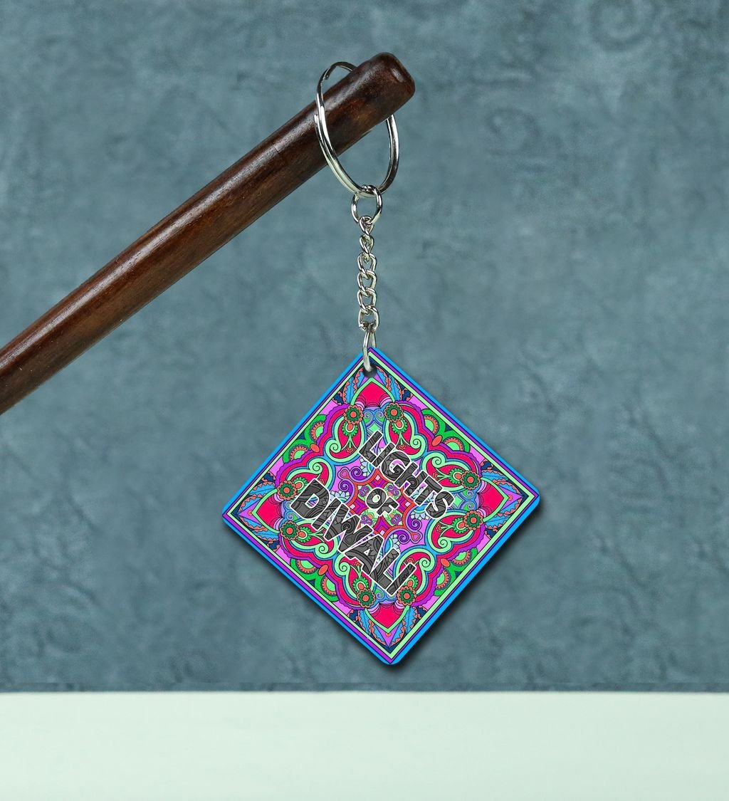 Diwali Festival Sparkles Bright in Neon Deep Printed Keychain Pack of 2