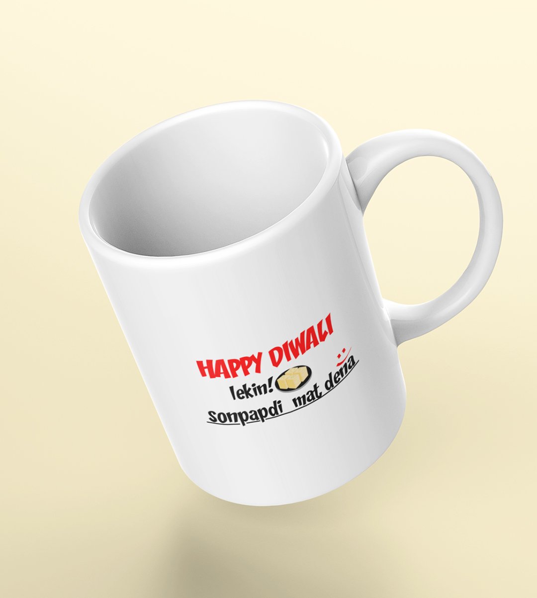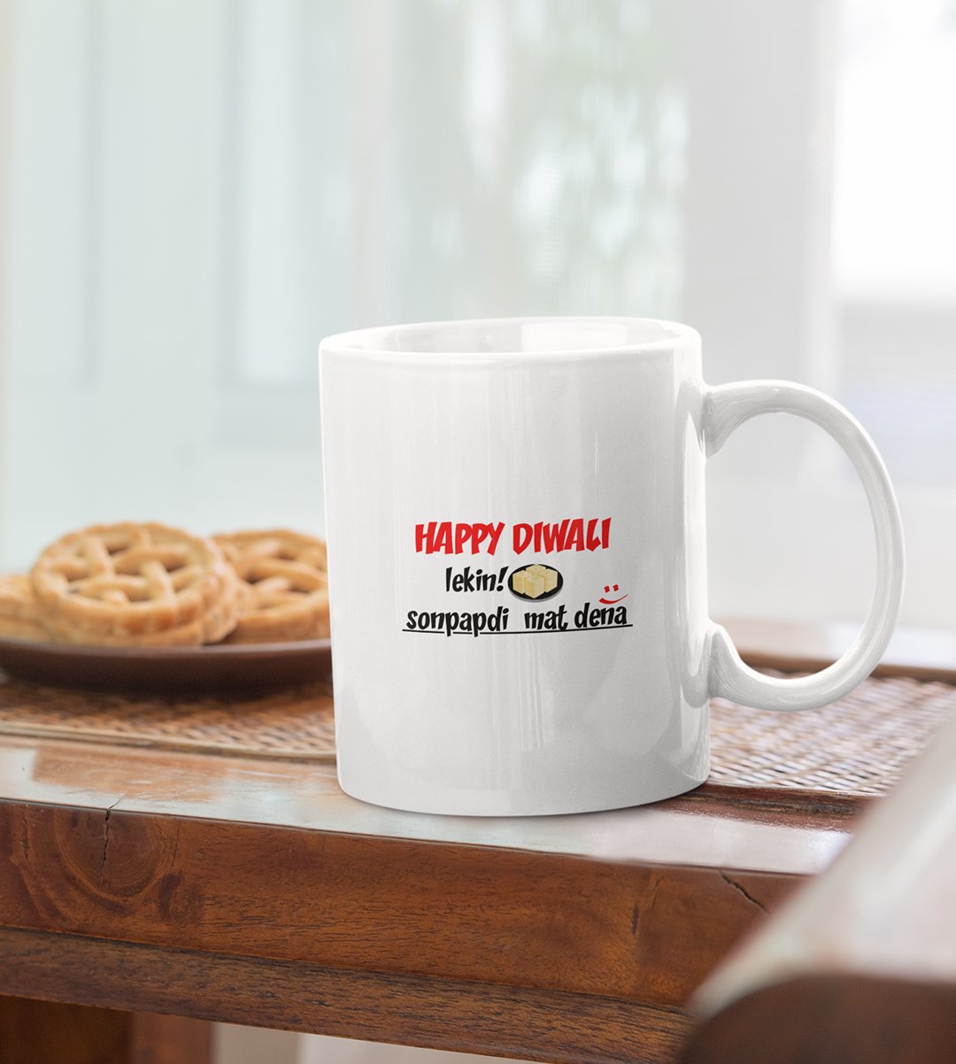 Add a delightful blend of humor and tradition to your Diwali with our "Diwali Laughter" Coffee Mug. The design features the heartwarming greeting "Happy Diwali," followed by the cheeky twist, "Lekin Sonpapdi mat dena :)." Sip your coffee with a side of laughter and embrace the lighthearted spirit of the festival.