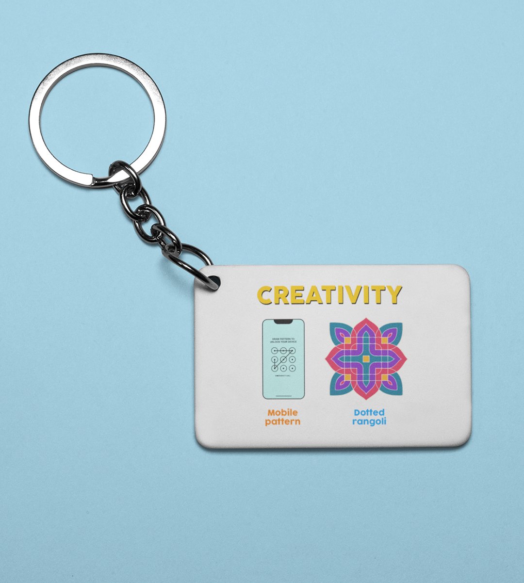 | Carry the magic of Diwali everywhere with this keychain, where patterns meet the vibrant hues of rangoli. |
