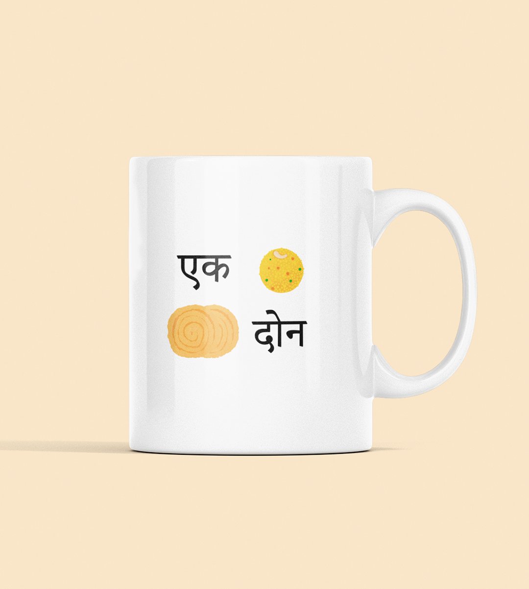 Celebrate the delectable delights of Diwali with our "Diwali Snack Delight" Coffee Mug. This delightful design showcases the perfect combination of 1 Ladoo and 2 Chakli, a treat for your taste buds. Sip your coffee and indulge in the joy of Diwali snacking with this mouthwatering mug.