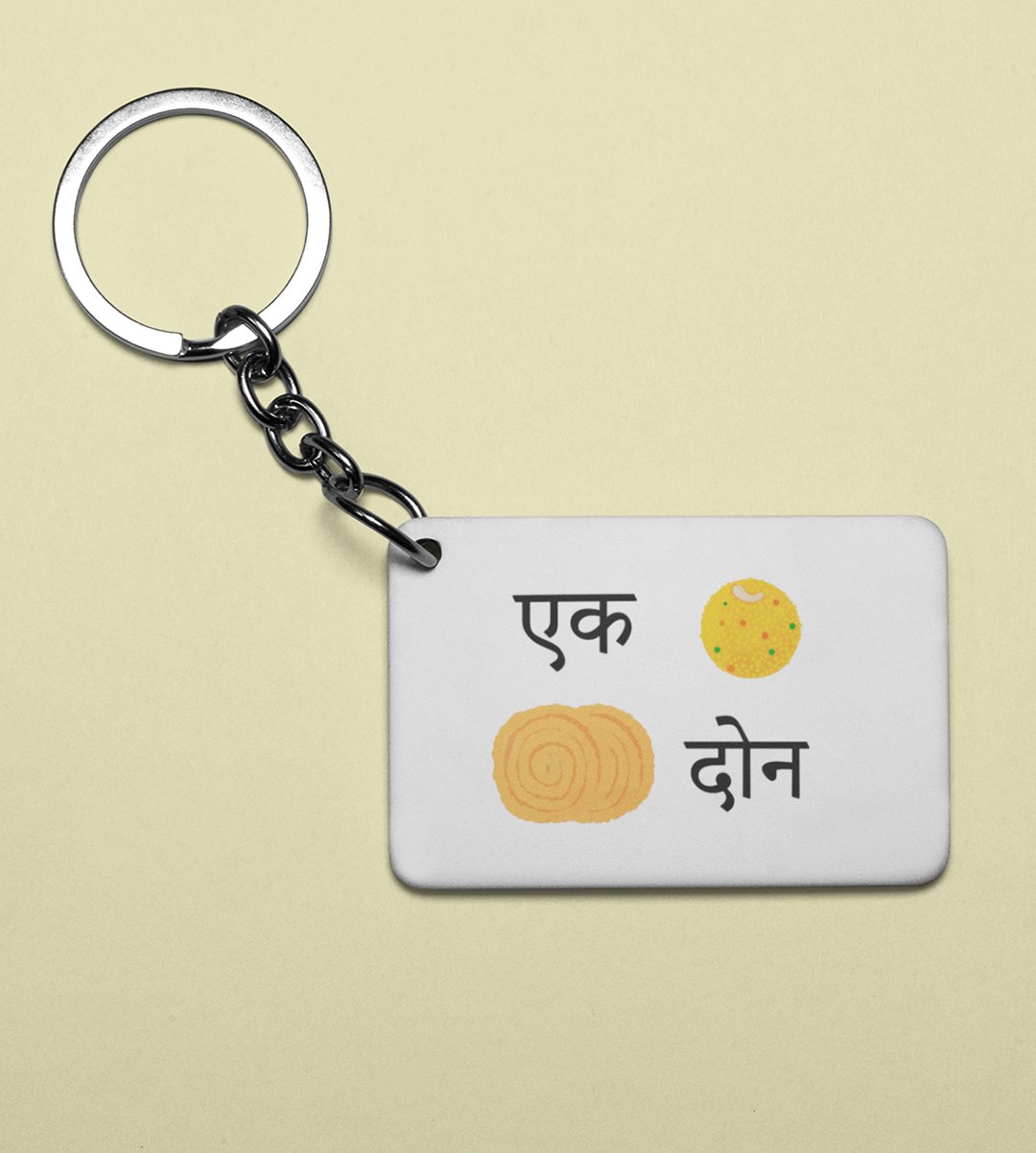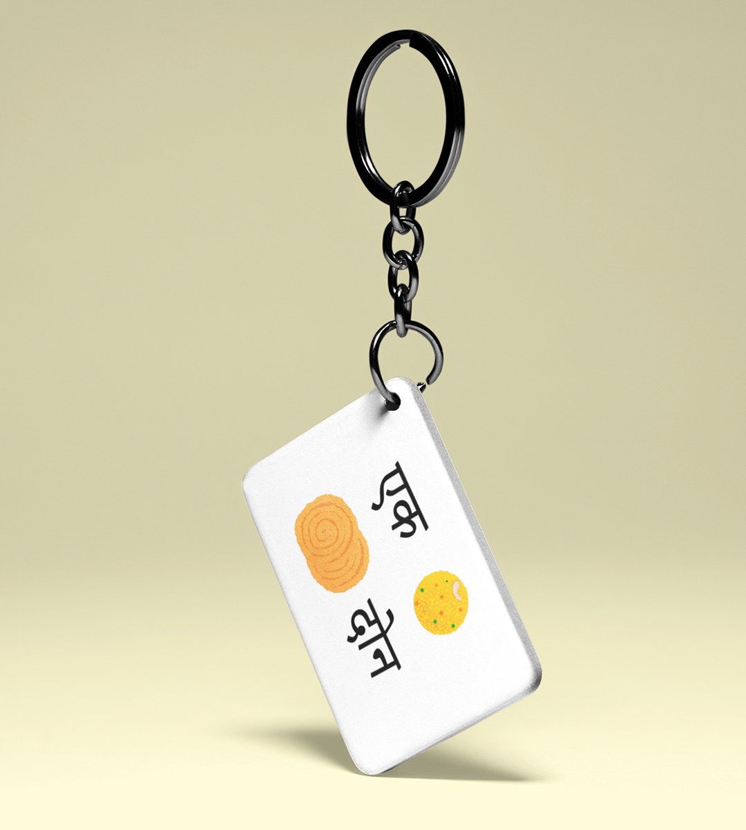 Celebrate the delightful combo of Ladoo and Chakli with this keychain. A tribute to the festive snacking tradition.