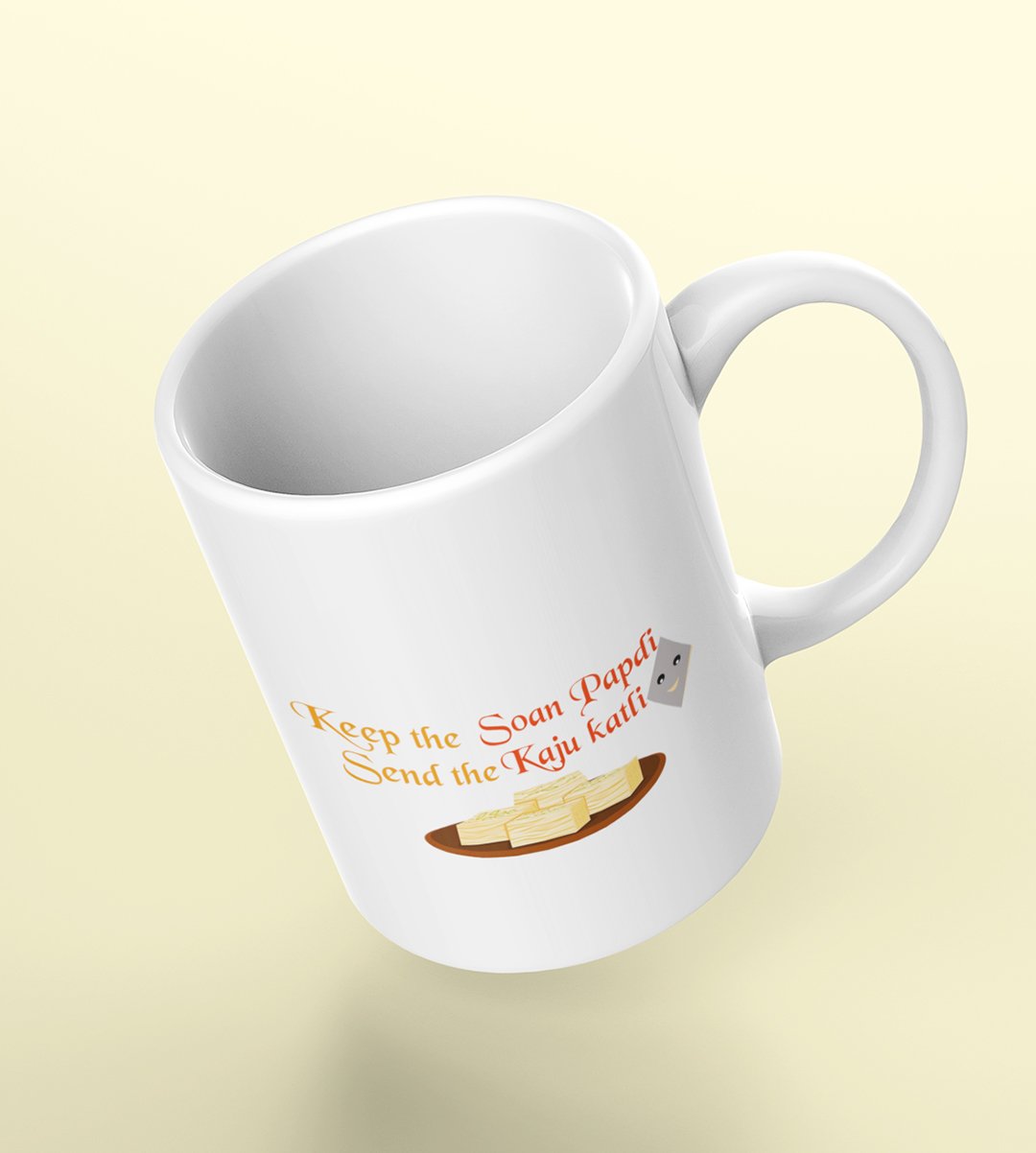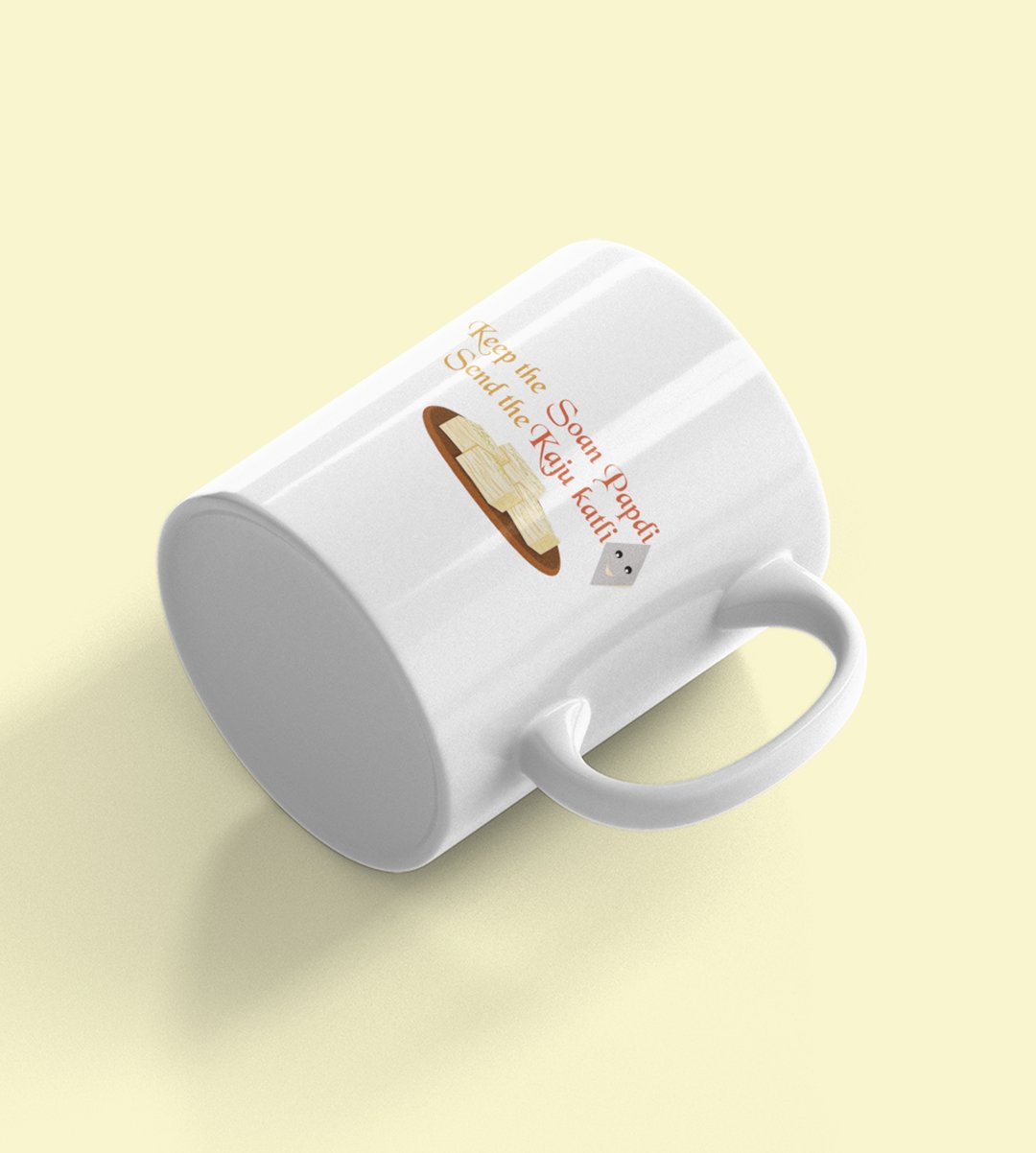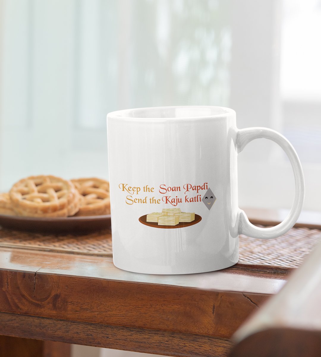Indulge in the sweetness of Diwali with our "Diwali Sweets Delight" Coffee Mug. The witty message "Keep the Sonpapdi, Send the Kaju Katli" adds a lighthearted touch to the festive season. Sip your coffee and savor the flavors of Diwali with this delightful mug.