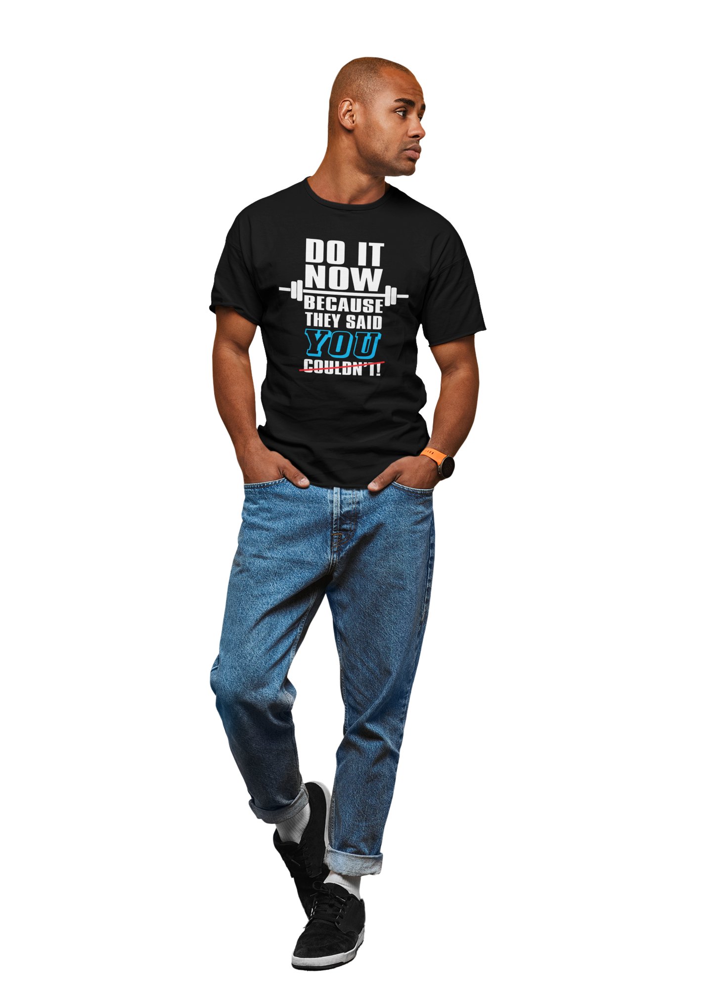Do It Now, Beacause They Said You Couldn't, (BG White and Blue), Round Neck Gym Tshirt (Black Tshirt) - Clothes for Gym Lovers - Suitable for Gym Going Person - Foremost Gifting Material for Your Friends and Close Ones