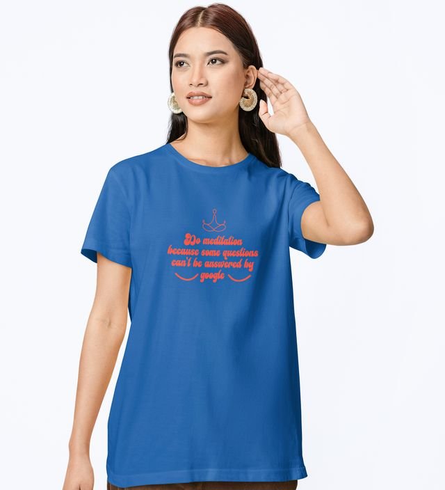 Do Meditation Blue Round Neck Cotton Half Sleeved Women T-Shirt with Printed Graphics
