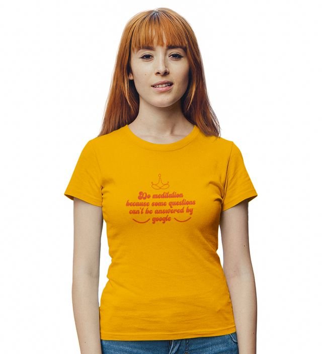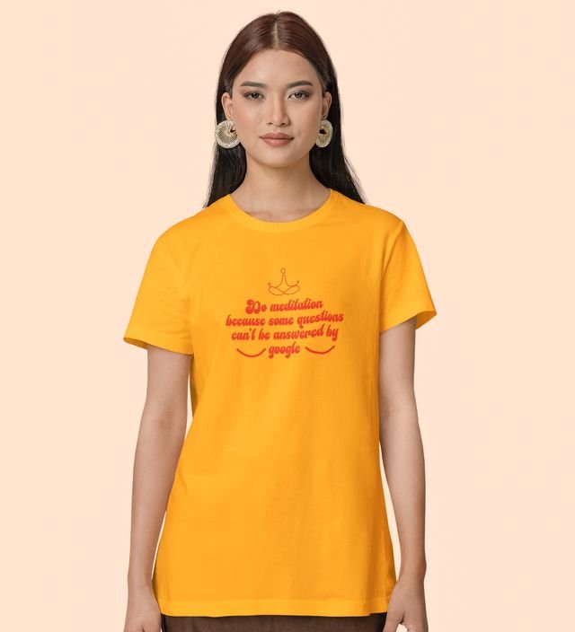 Do Meditation Yellow Round Neck Cotton Half Sleeved Women T-Shirt with Printed Graphics