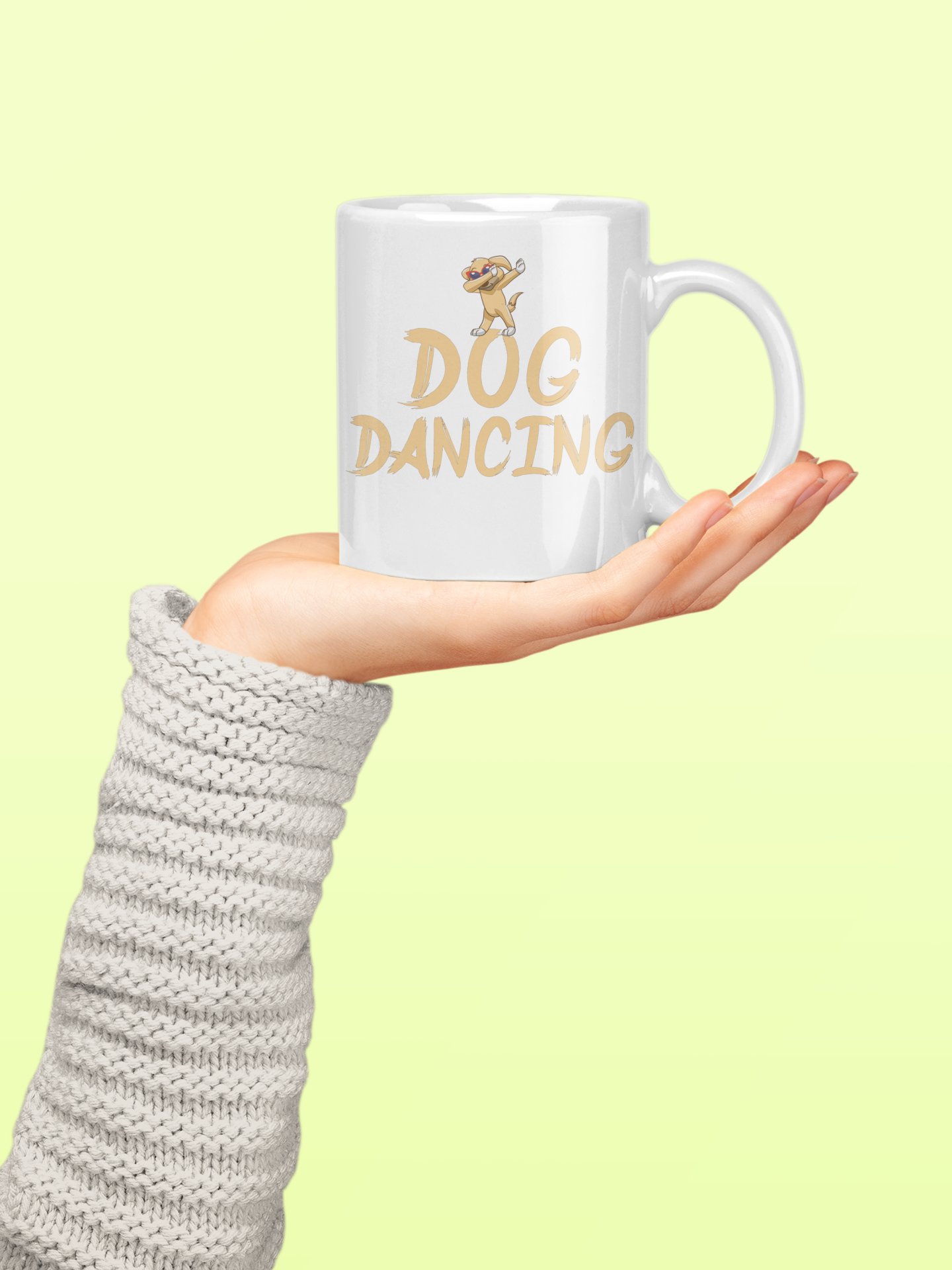 Dog dancing - pets themed printed ceramic white coffee and tea mugs/ cups for pets lover people