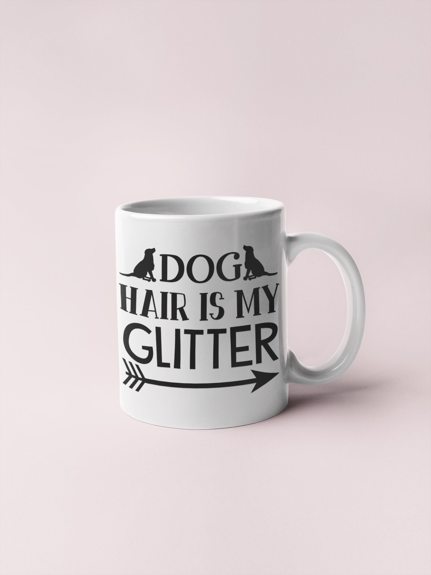 Dog hair is my glitter- pets themed printed ceramic white coffee and tea mugs/ cups for pets lover people