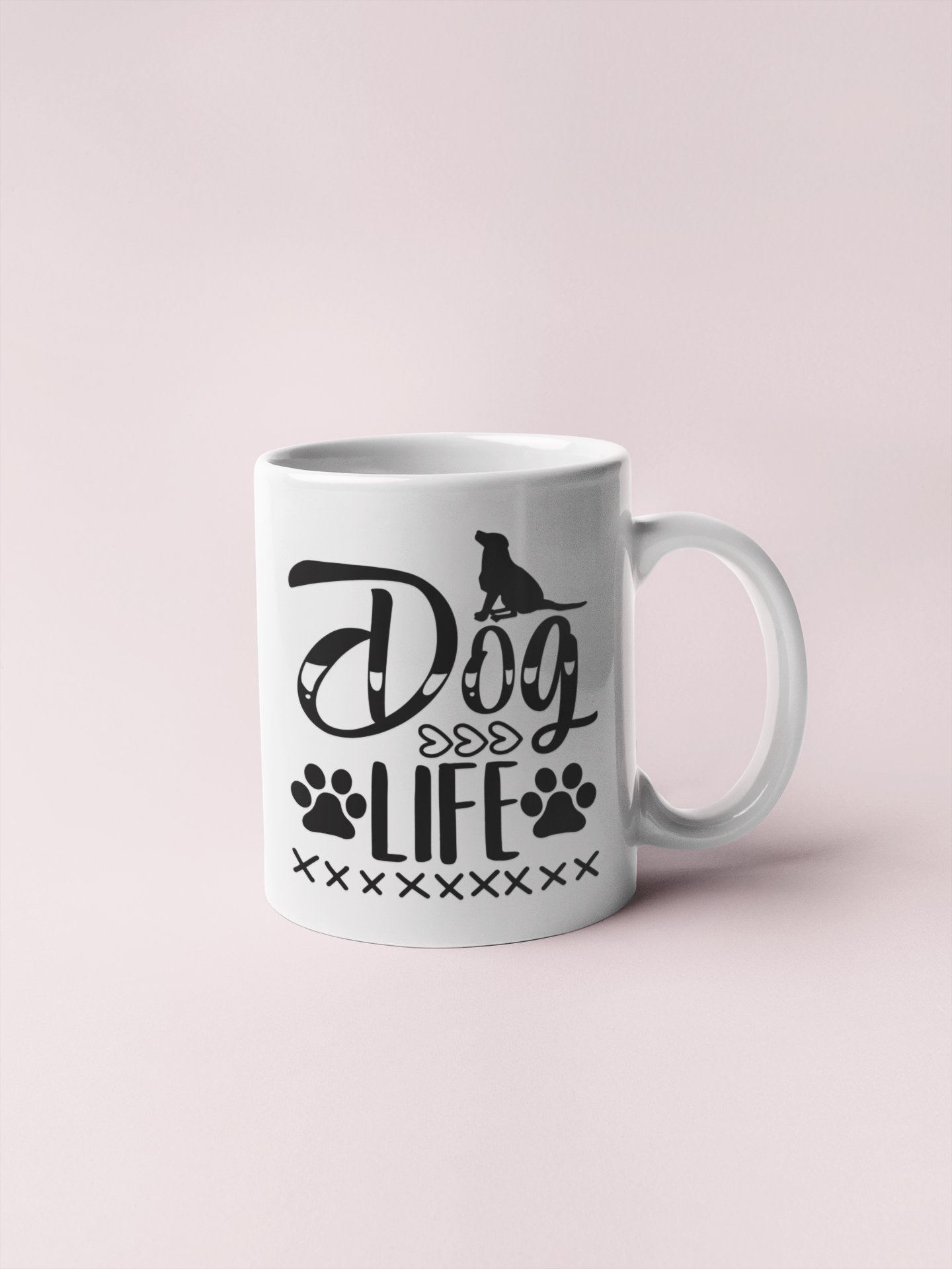 Dog life text in black - pets themed printed ceramic white coffee and tea mugs/ cups for pets lover people