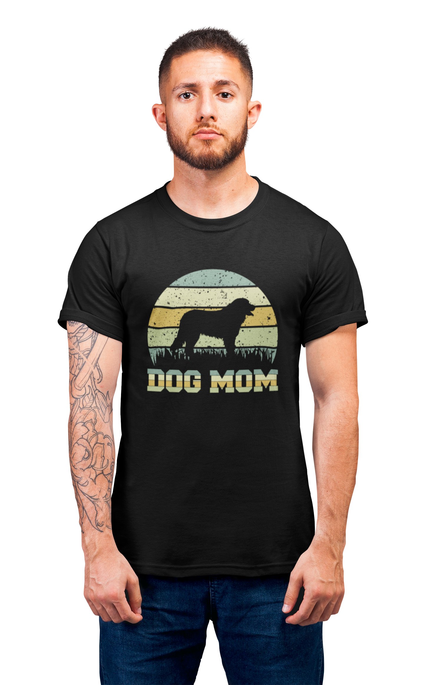 Dog mom - printed stylish Black cotton tshirt- tshirts for men