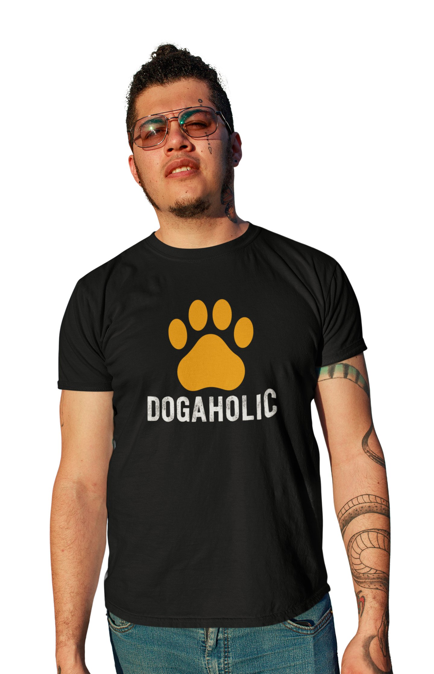 Dogaholic - printed stylish Black cotton tshirt- tshirts for men