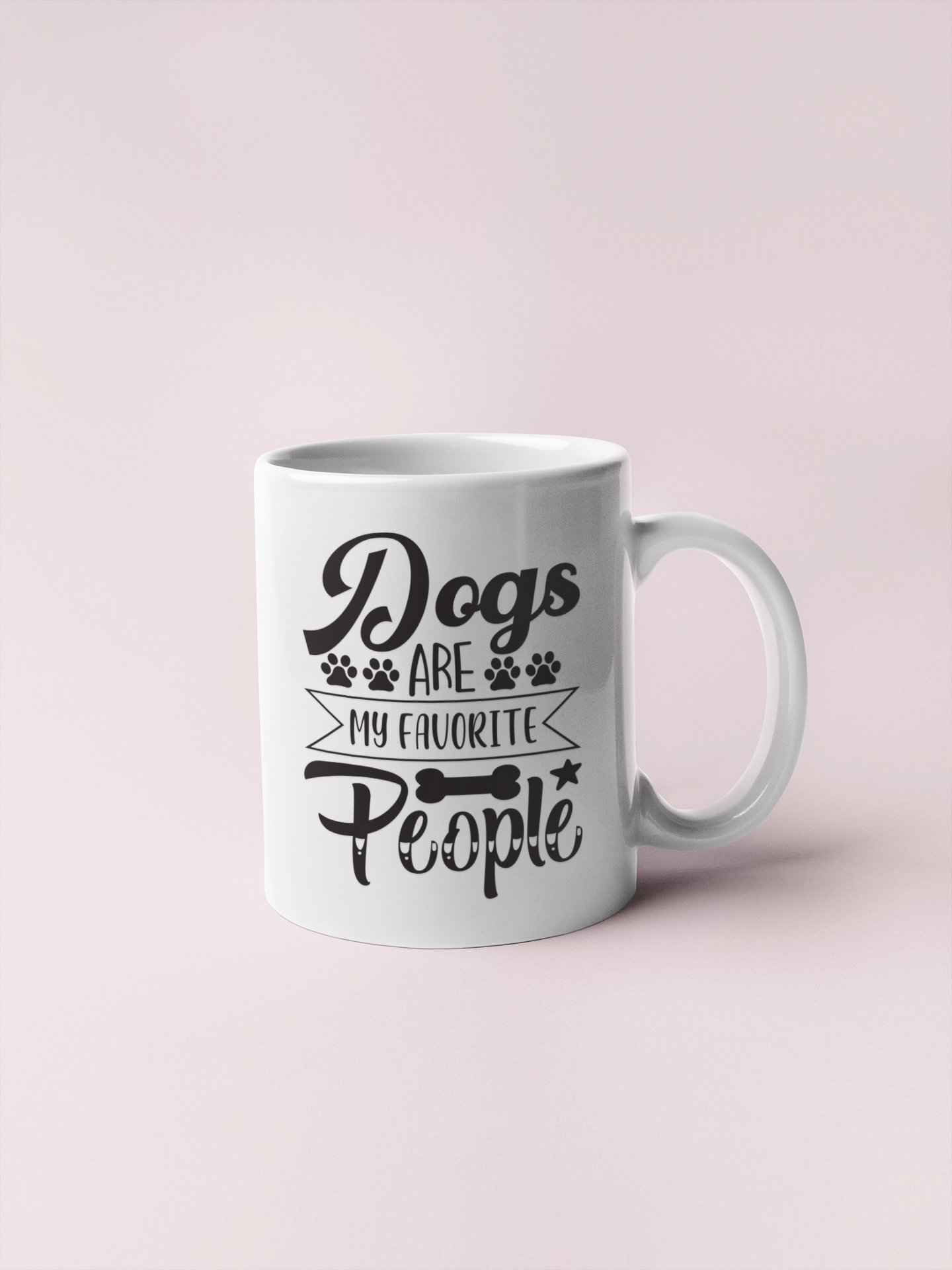 Dogs are my favorite people text in black - pets themed printed ceramic white coffee and tea mugs/ cups for pets lover people