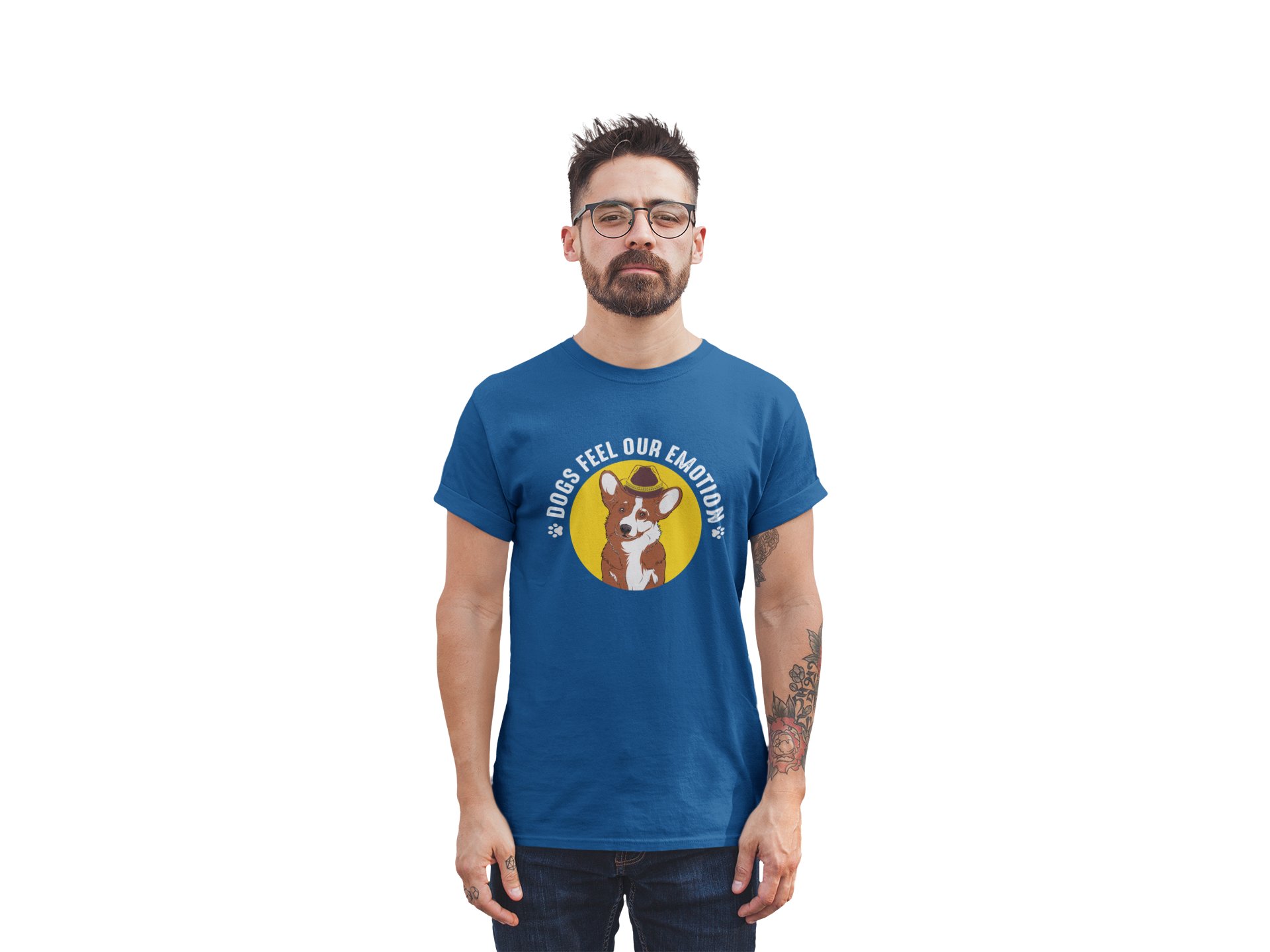 Dogs feel our emotions White Text- printed stylish Black cotton tshirt- tshirts for men