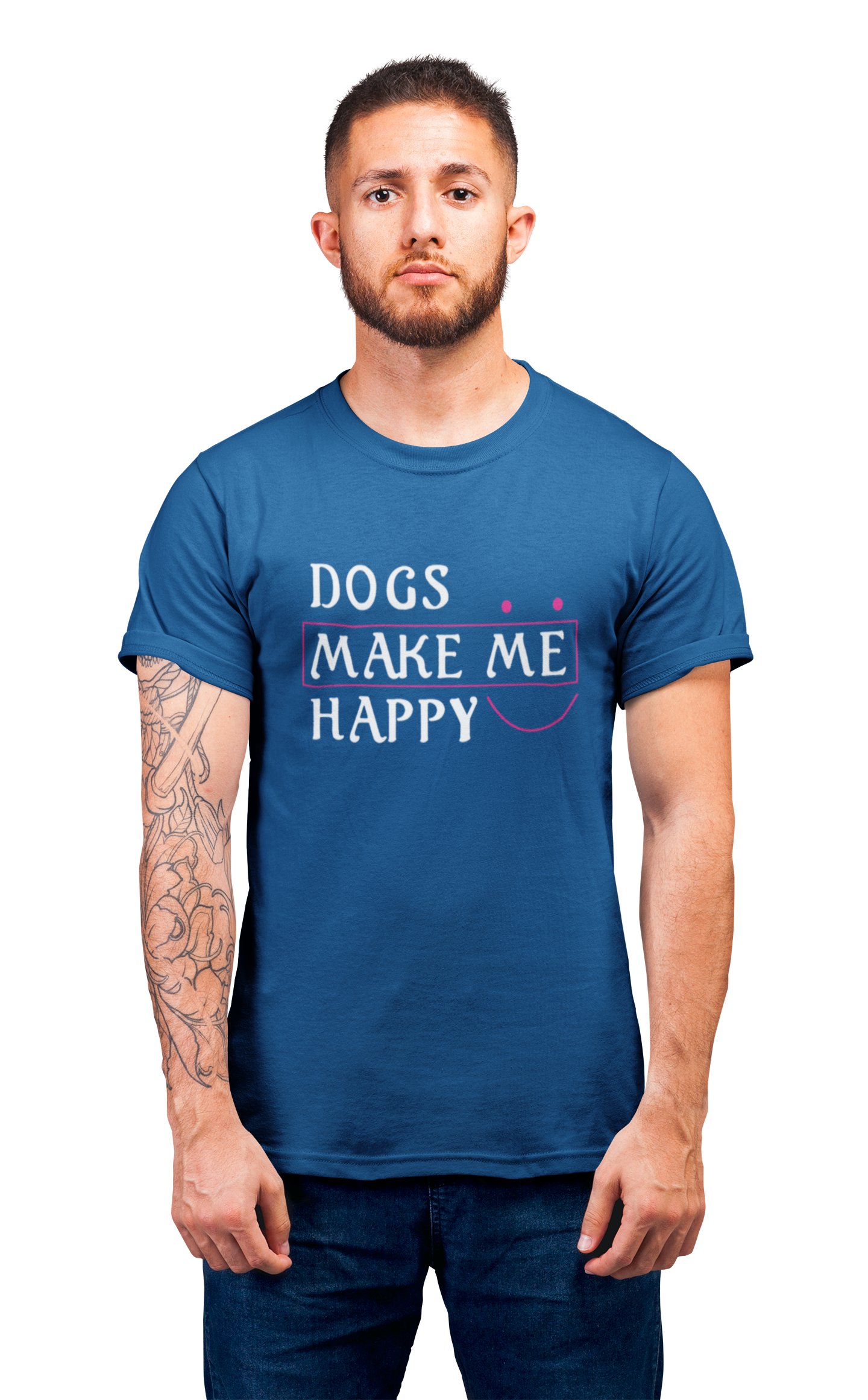 Dogs Make Me Happy -printed stylish Black cotton tshirt- tshirts for men