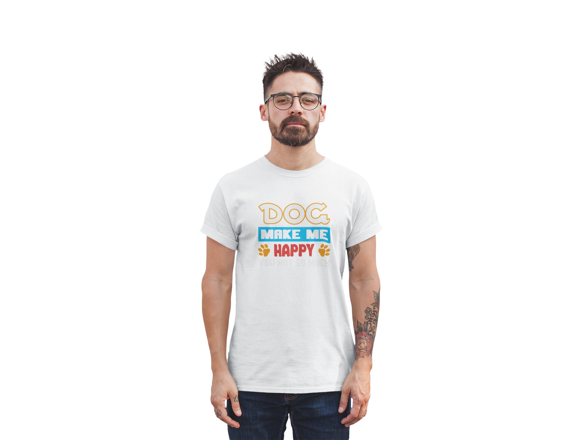 Dogs make me happy - printed stylish White cotton tshirt- tshirts for men