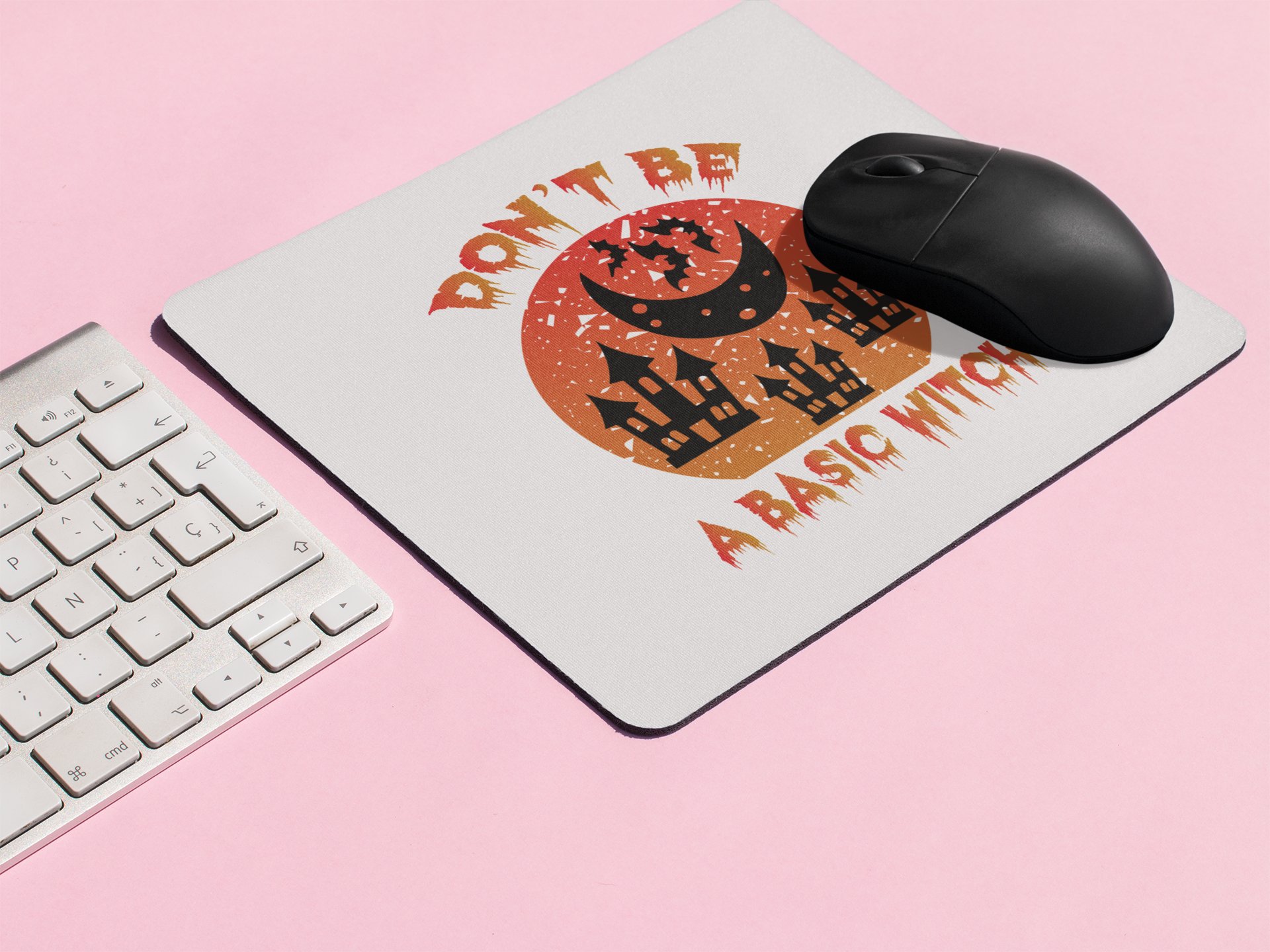 Don't be a basic, moon and house Halloween text illustration graphic-Halloween Theme Mousepads
