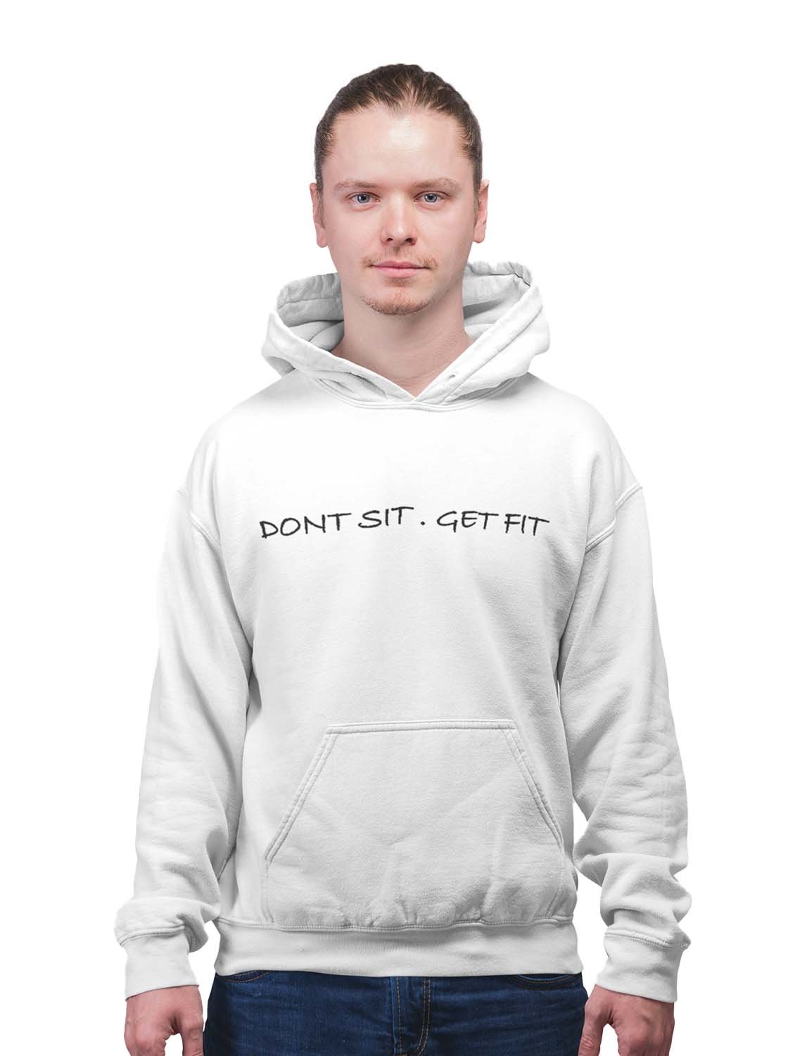Dont Sit.Get FIt Black Text printed artswear white hoodies for winter casual wear specially for Men