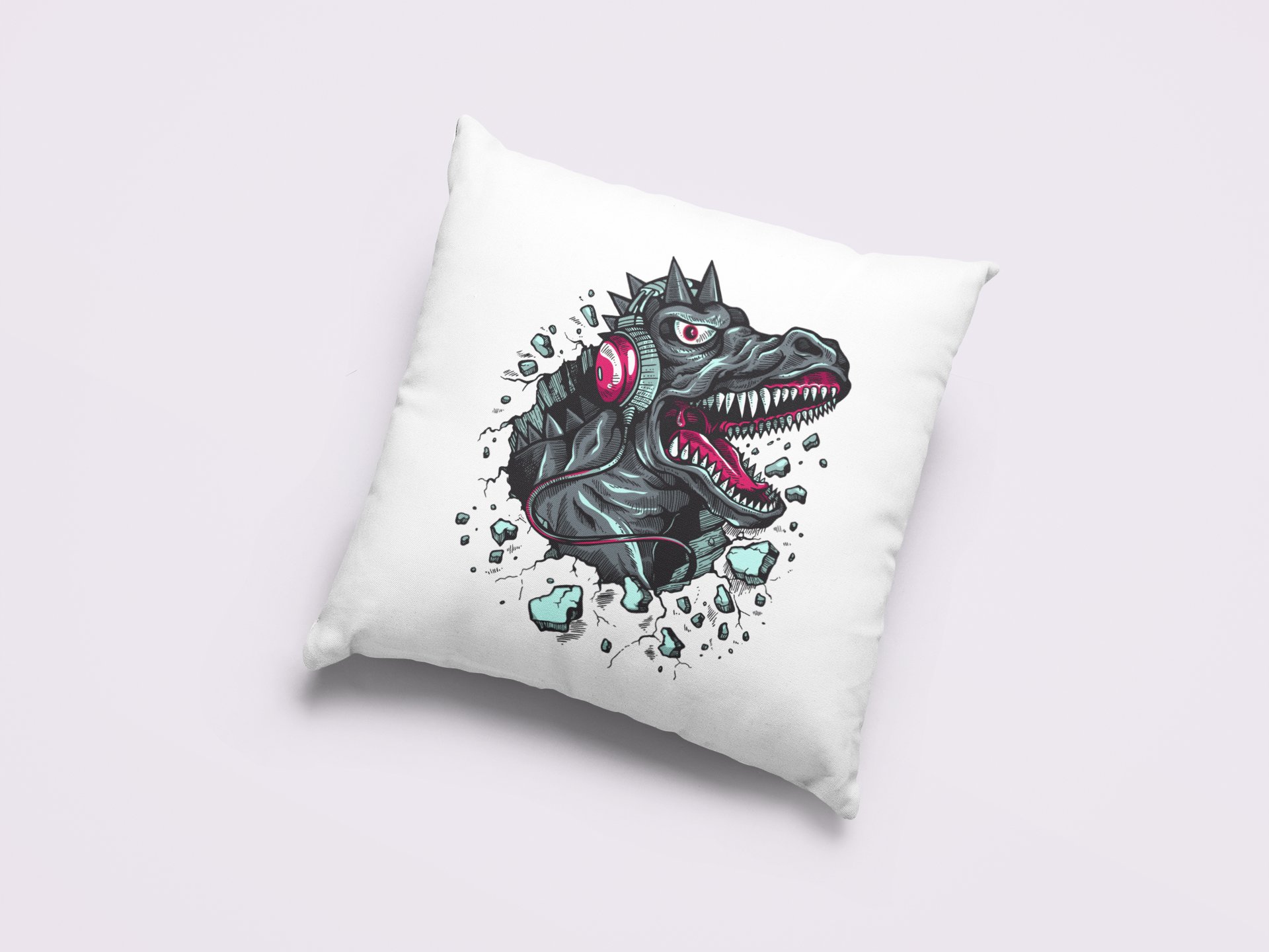Dragon With Headphone-Printed Pillow Covers(Pack Of 2)