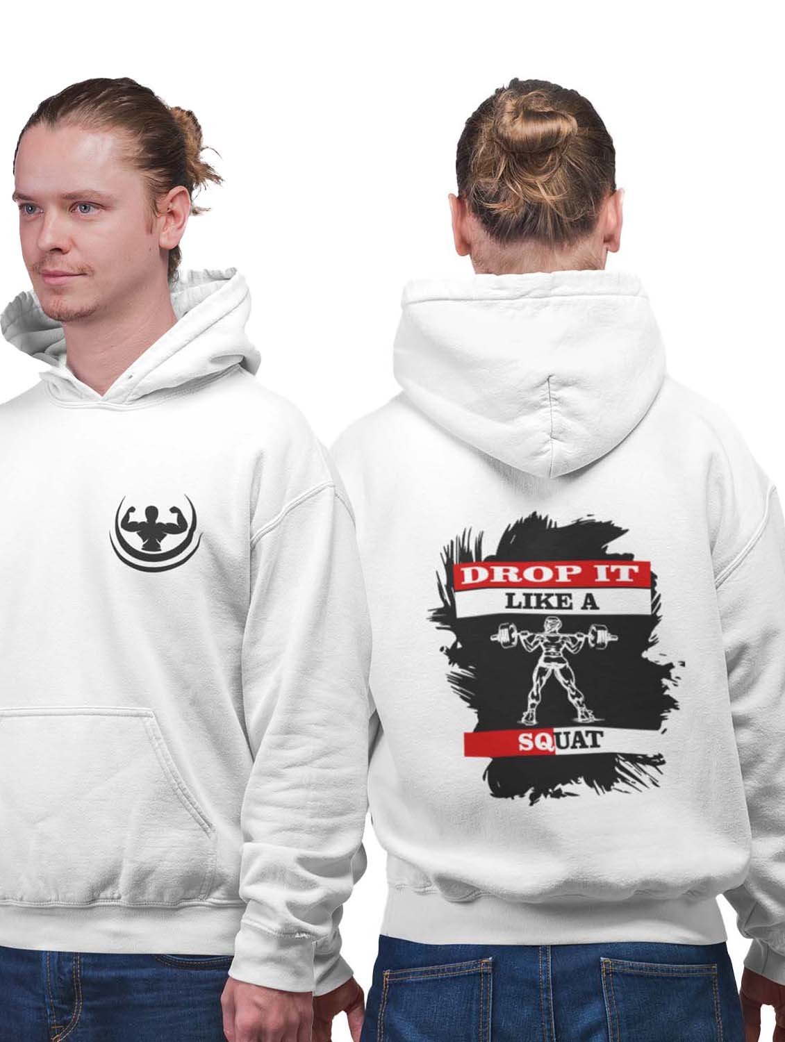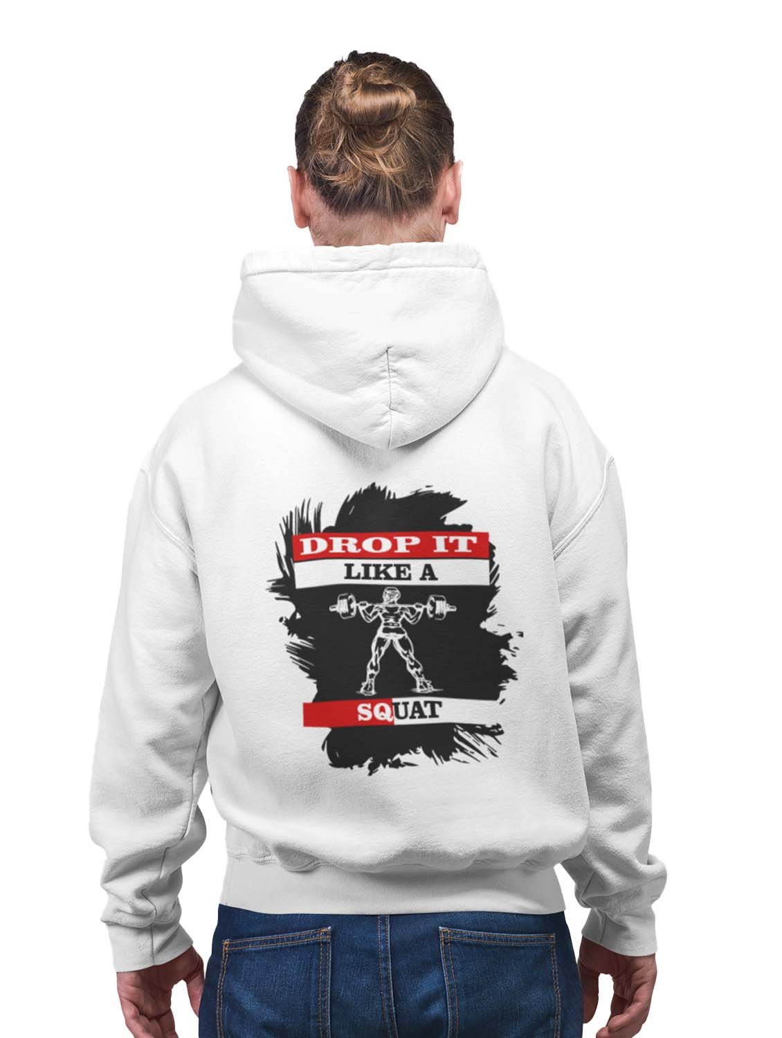 Drop It Like A Squat printed artswear white hoodies for winter casual wear specially for Men