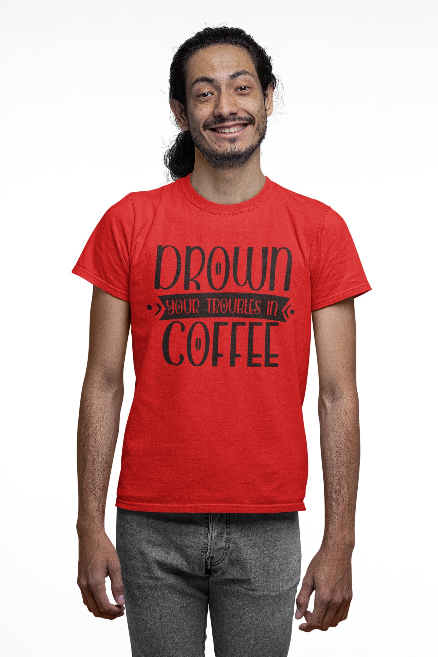 Drown your troubles in Coffee - Red - printed t shirt - comfortable round neck cotton.