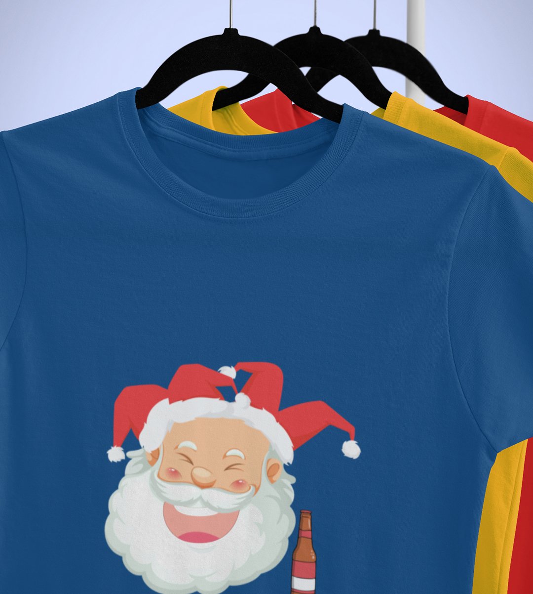 Drunkard Santa : Amazingly Printed T-shirt (Blue) Best Gift For Christmas Celebration