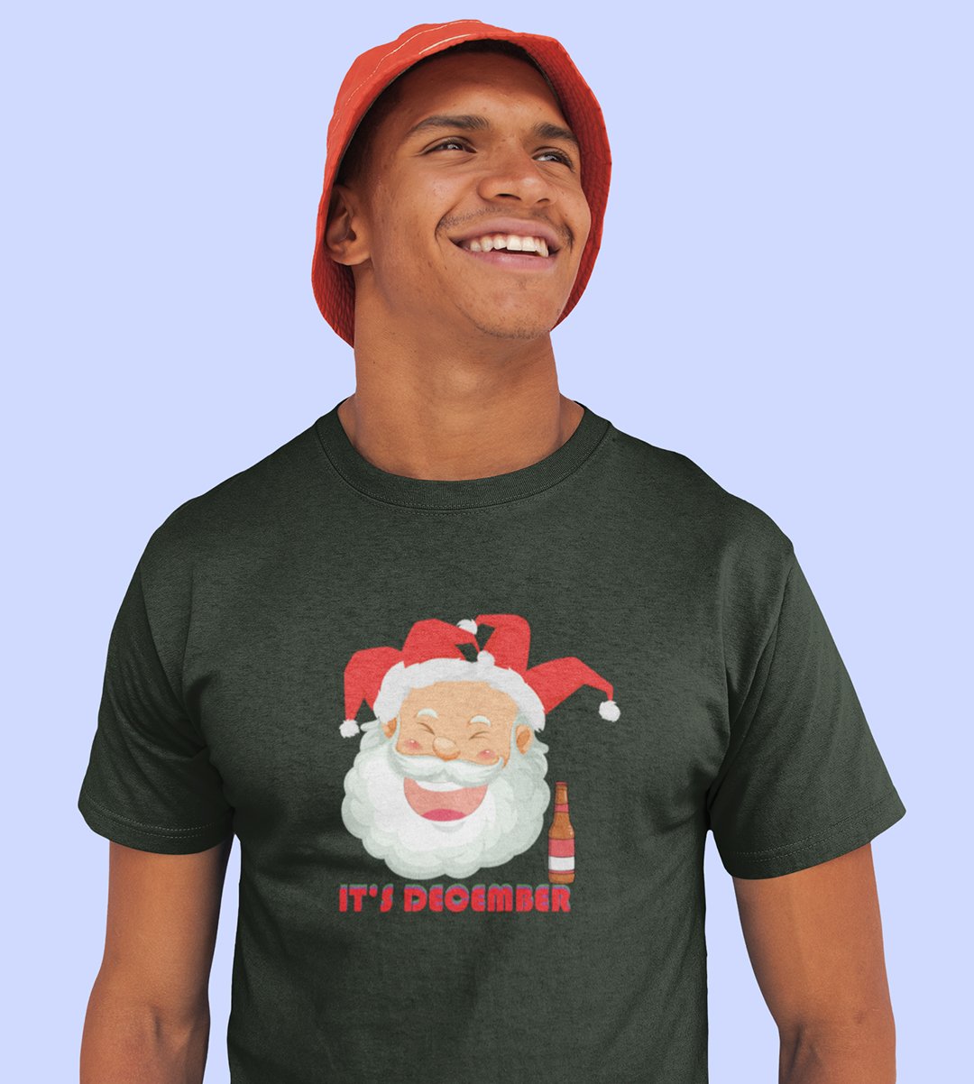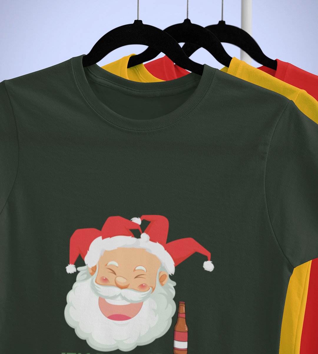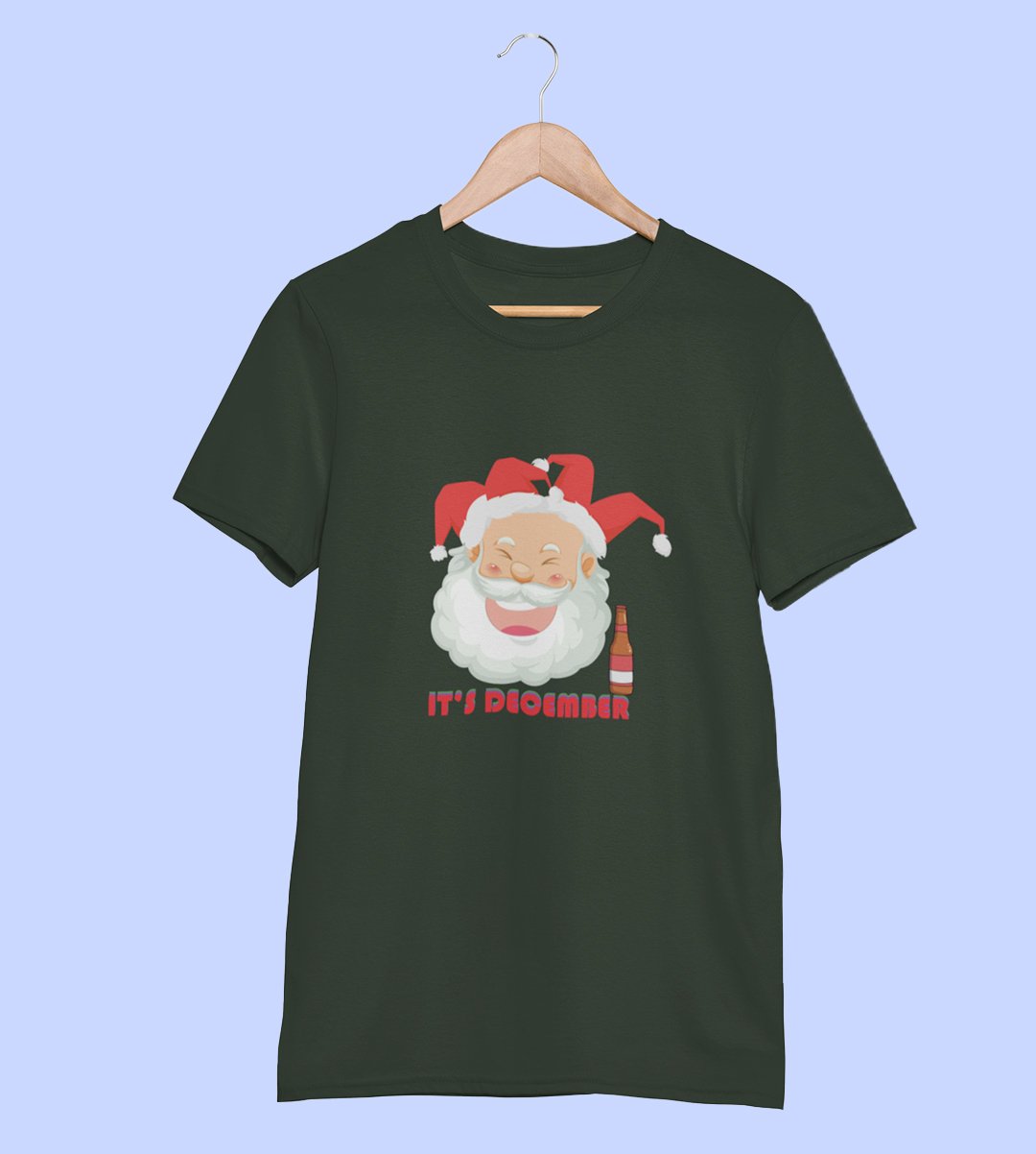 Drunkard Santa : Amazingly Printed T-shirt (Green) Best Gift For Christmas Celebration