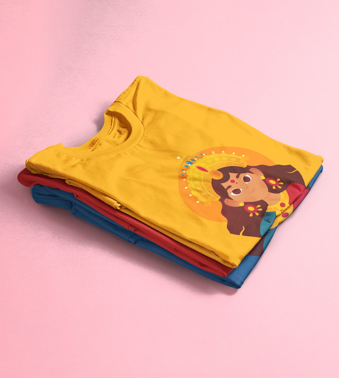 Navratri is a very auspicious festival for hindus. It takes place at the beginning of October and sometimes September. Enjoy the 9 days of festivities with full zeal and make yourself submerged in the love of Maa Durga. Navratri is also known as Durga Puja. And with this Tees, you can shine like a star during this festive season with our navratri themed cotton half sleeved Tshirts. You can pair our t-shirts with trousers and denim of your choice and make it a weekday smart casual or weekend wear. This is durable. This tshirt is smooth and soft which makes you comfortable to wear during all seasons. The printing in it is durable and odourless. It has five sizes, S,M,L,XL,XXL. The Tshirt colour is intact even after repeated washes. It can be kept in your wardrobe and hangers. Please avoid washing mashine to clean this Tee, it may affect the print. Hand wash only. We have brought you many navratri related designs printed on our different colour Tshirts to choose from. Grab it now.