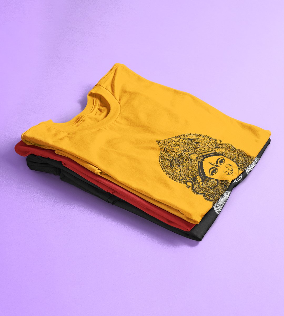 Navratri is a very auspicious festival for hindus. It takes place at the beginning of October and sometimes September. Enjoy the 9 days of festivities with full zeal and make yourself submerged in the love of Maa Durga. Navratri is also known as Durga Puja. And with this Tees, you can shine like a star during this festive season with our navratri themed cotton half sleeved Tshirts. You can pair our t-shirts with trousers and denim of your choice and make it a weekday smart casual or weekend wear. This is durable. This tshirt is smooth and soft which makes you comfortable to wear during all seasons. The printing in it is durable and odourless. It has five sizes, S,M,L,XL,XXL. The Tshirt colour is intact even after repeated washes. It can be kept in your wardrobe and hangers. Please avoid washing mashine to clean this Tee, it may affect the print. Hand wash only. We have brought you many navratri related designs printed on our different colour Tshirts to choose from. Grab it now.