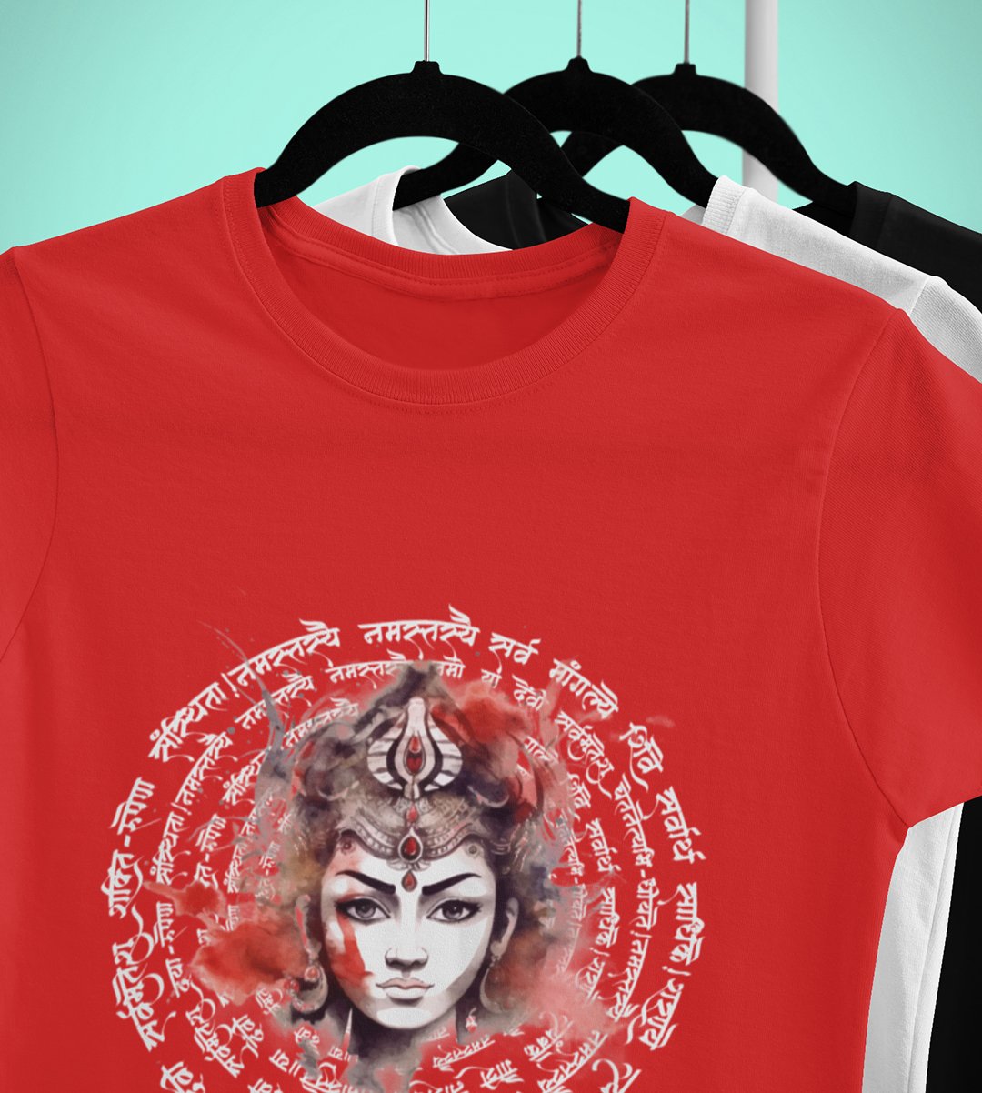 Durga maa face printed unisex adults round neck cotton half-sleeve red tshirt specially for Navratri festival/ Durga puja
