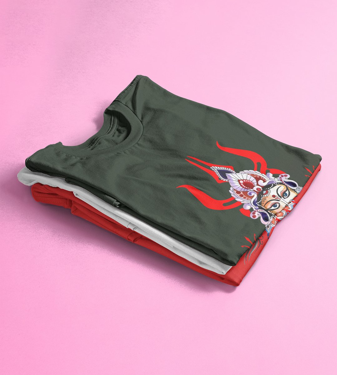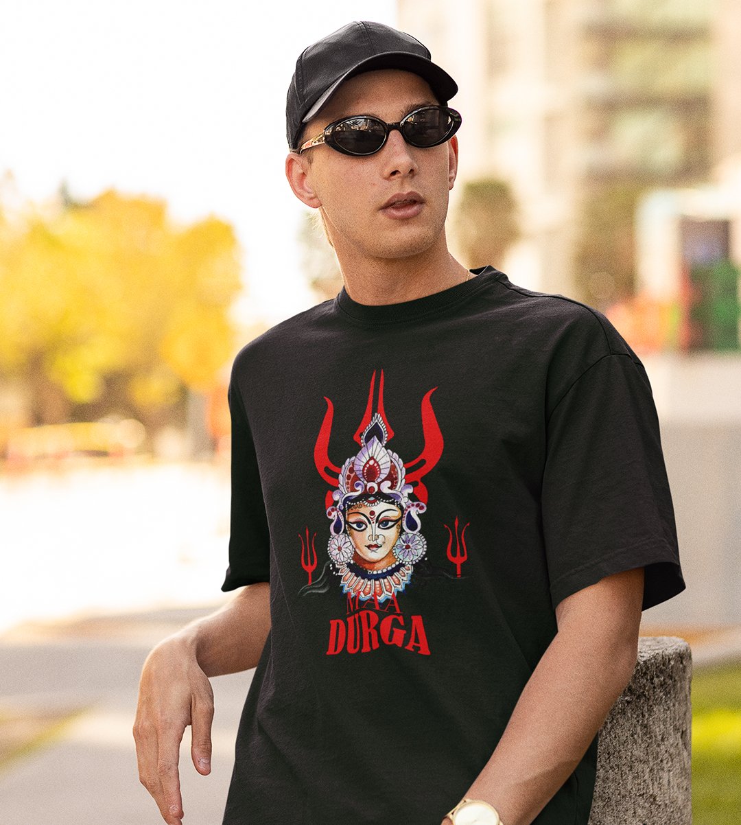 Navratri is a very auspicious festival for hindus. It takes place at the beginning of October and sometimes September. Enjoy the 9 days of festivities with full zeal and make yourself submerged in the love of Maa Durga. Navratri is also known as Durga Puja. And with this Tees, you can shine like a star during this festive season with our navratri themed cotton half sleeved Tshirts. You can pair our t-shirts with trousers and denim of your choice and make it a weekday smart casual or weekend wear. This is durable. This tshirt is smooth and soft which makes you comfortable to wear during all seasons. The printing in it is durable and odourless. It has five sizes, S,M,L,XL,XXL. The Tshirt colour is intact even after repeated washes. It can be kept in your wardrobe and hangers. Please avoid washing mashine to clean this Tee, it may affect the print. Hand wash only. We have brought you many navratri related designs printed on our different colour Tshirts to choose from. Grab it now.