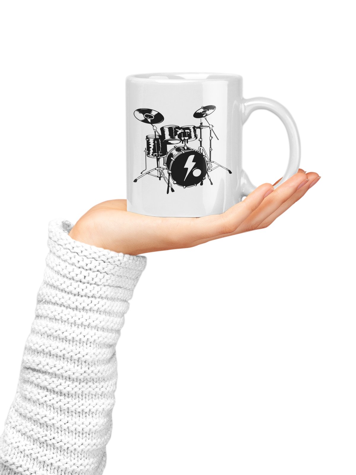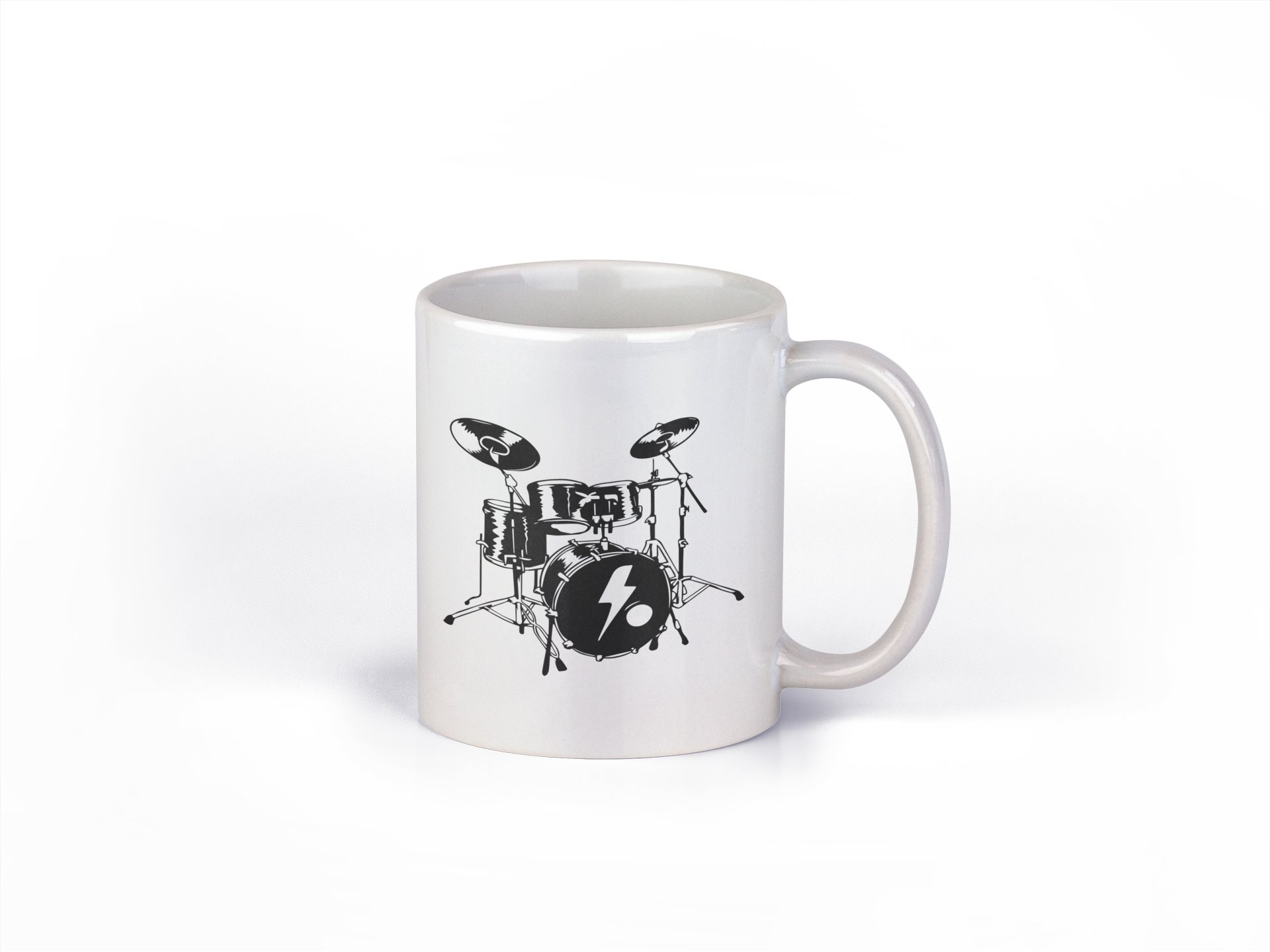 Drum Set - music themed printed ceramic white coffee and tea mugs/ cups for music lovers