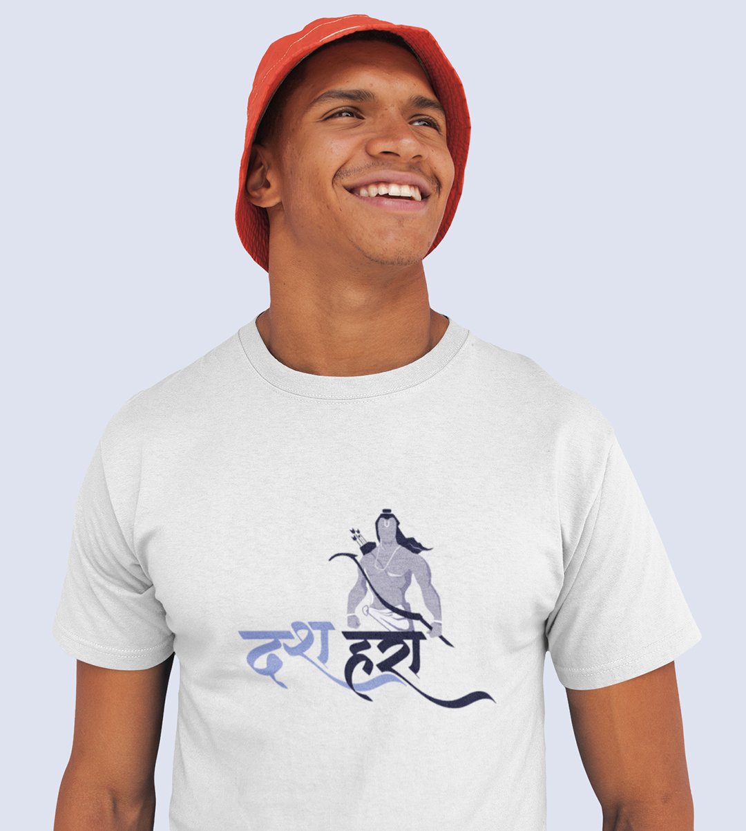 Dussehra (BG grey) printed unisex adults round neck cotton half-sleeve white tshirt specially for Navratri festival/ Durga puja