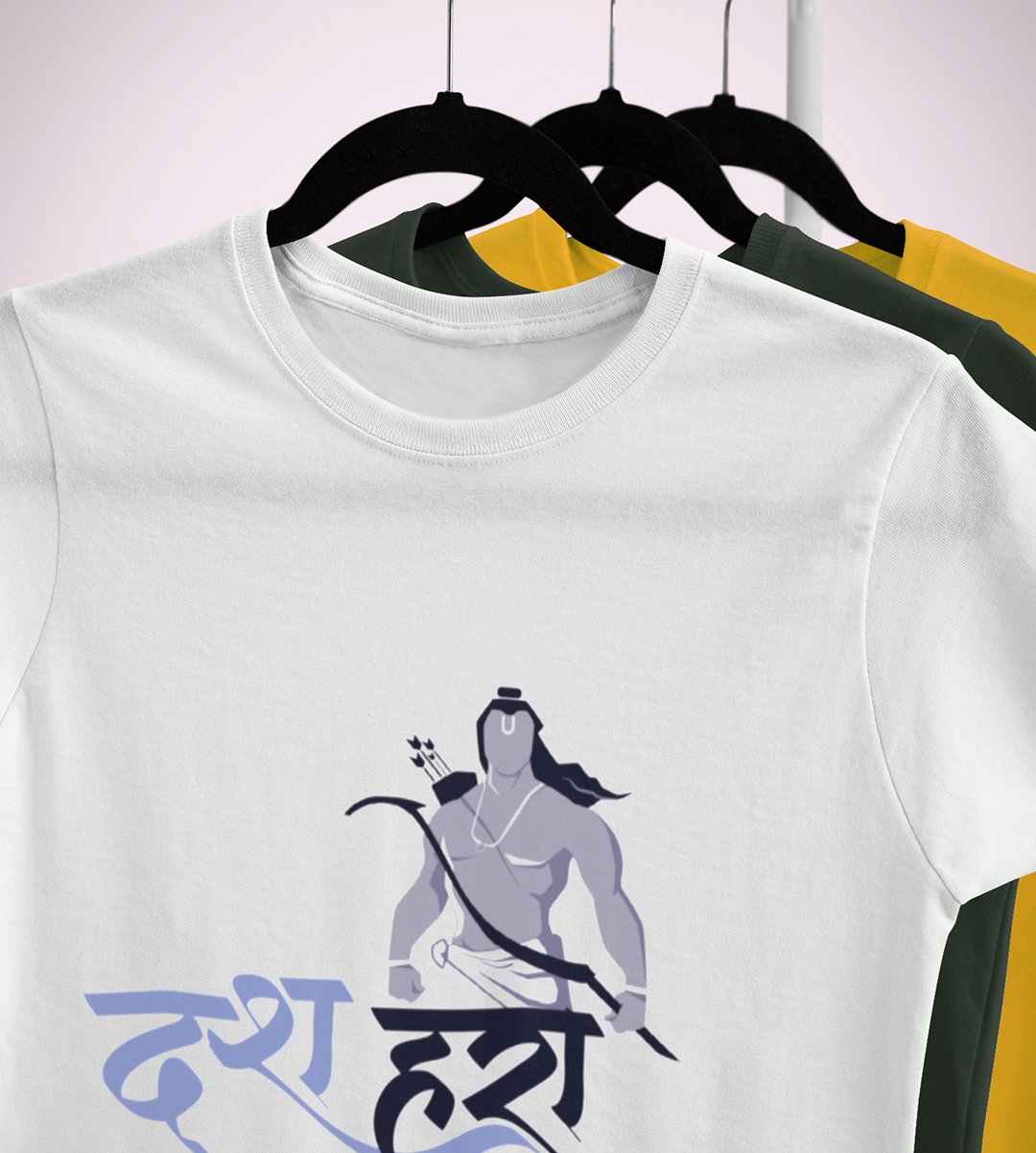 Navratri is a very auspicious festival for hindus. It takes place at the beginning of October and sometimes September. Enjoy the 9 days of festivities with full zeal and make yourself submerged in the love of Maa Durga. Navratri is also known as Durga Puja. And with this Tees, you can shine like a star during this festive season with our navratri themed cotton half sleeved Tshirts. You can pair our t-shirts with trousers and denim of your choice and make it a weekday smart casual or weekend wear. This is durable. This tshirt is smooth and soft which makes you comfortable to wear during all seasons. The printing in it is durable and odourless. It has five sizes, S,M,L,XL,XXL. The Tshirt colour is intact even after repeated washes. It can be kept in your wardrobe and hangers. Please avoid washing mashine to clean this Tee, it may affect the print. Hand wash only. We have brought you many navratri related designs printed on our different colour Tshirts to choose from. Grab it now.