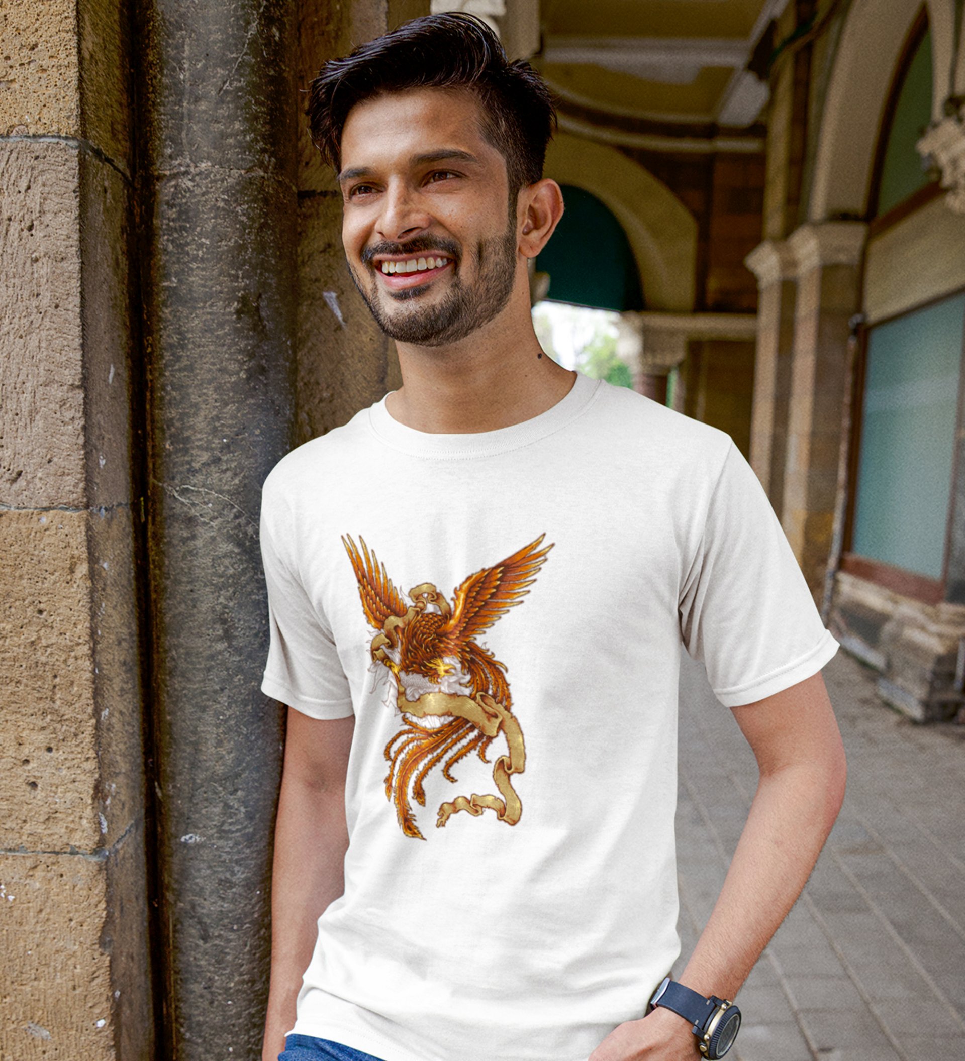 Phoenix- The Myth White Round Neck Cotton Half Sleeved Men's T-Shirt with Printed Graphics