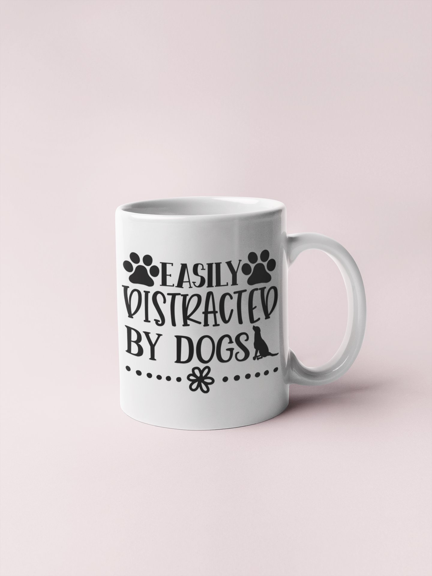 Easily distracted by dogs - pets themed printed ceramic white coffee and tea mugs/ cups for pets lover people