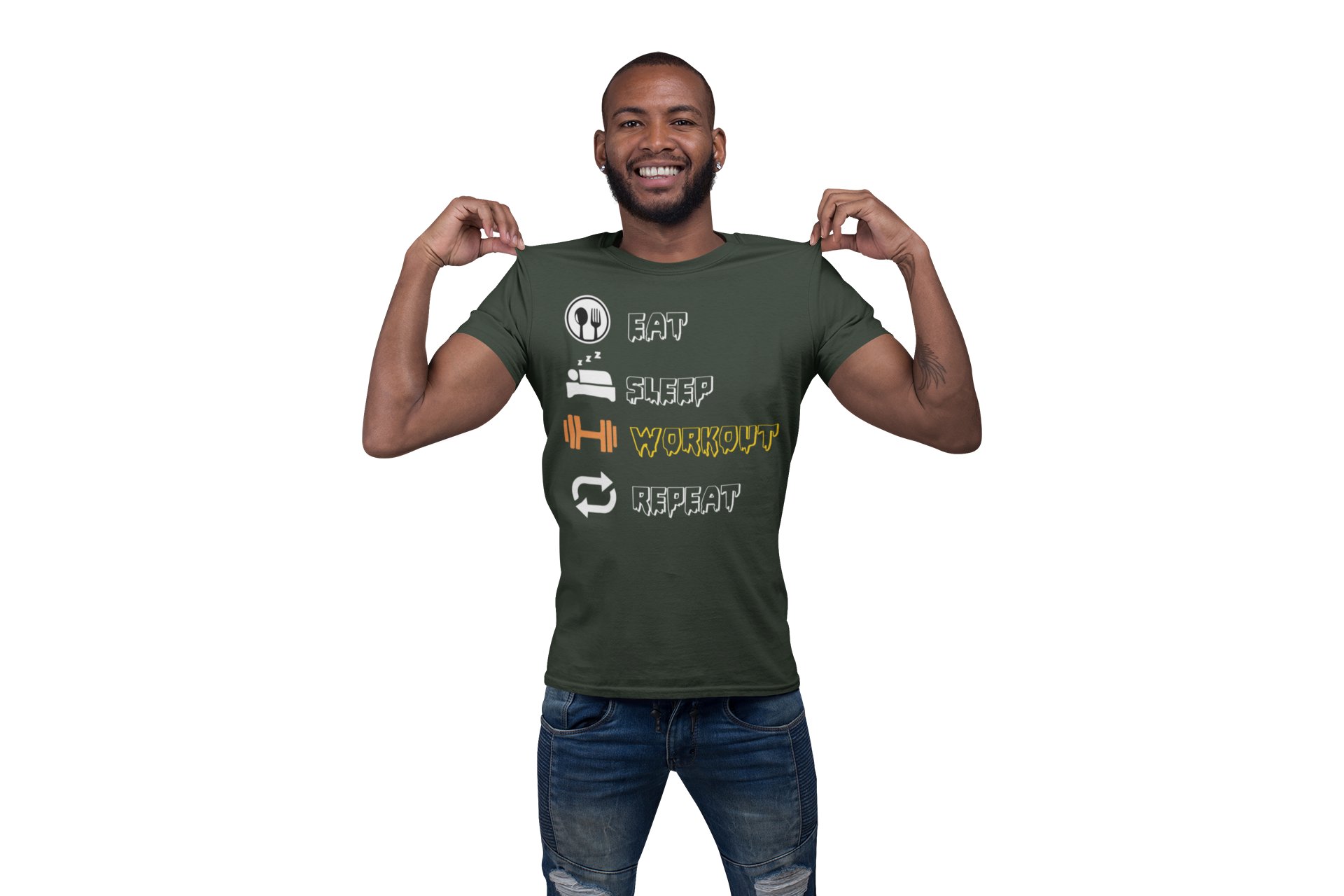 Eat, Sleep, Workout, Repeat, Round Neck Gym Tshirt - Foremost Gifting Material for Your Friends and Close Ones