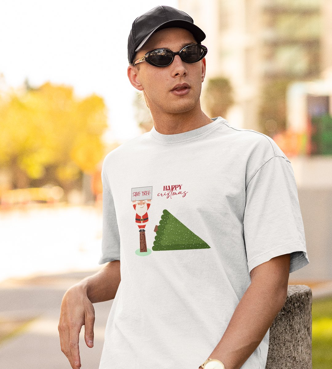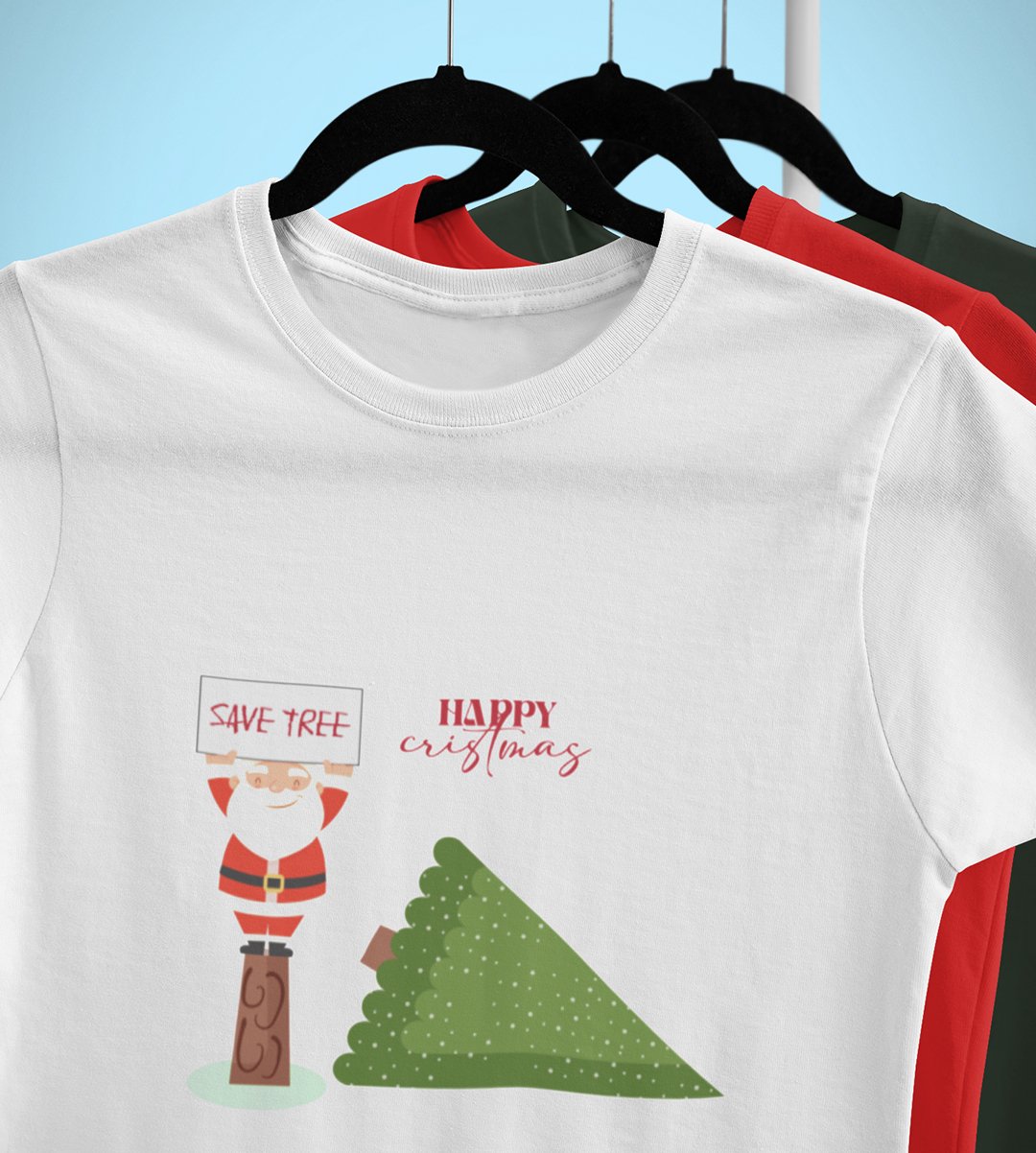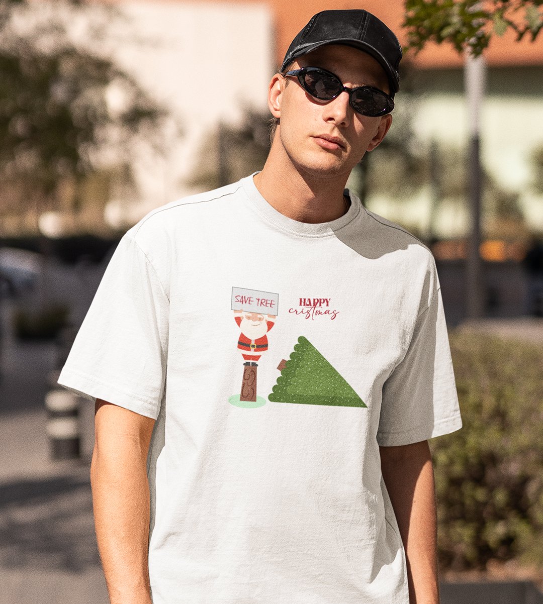 Eco-Friendly Santa: Beautifully Printed T-shirt (White) Exclusive Gift For Boys Girls