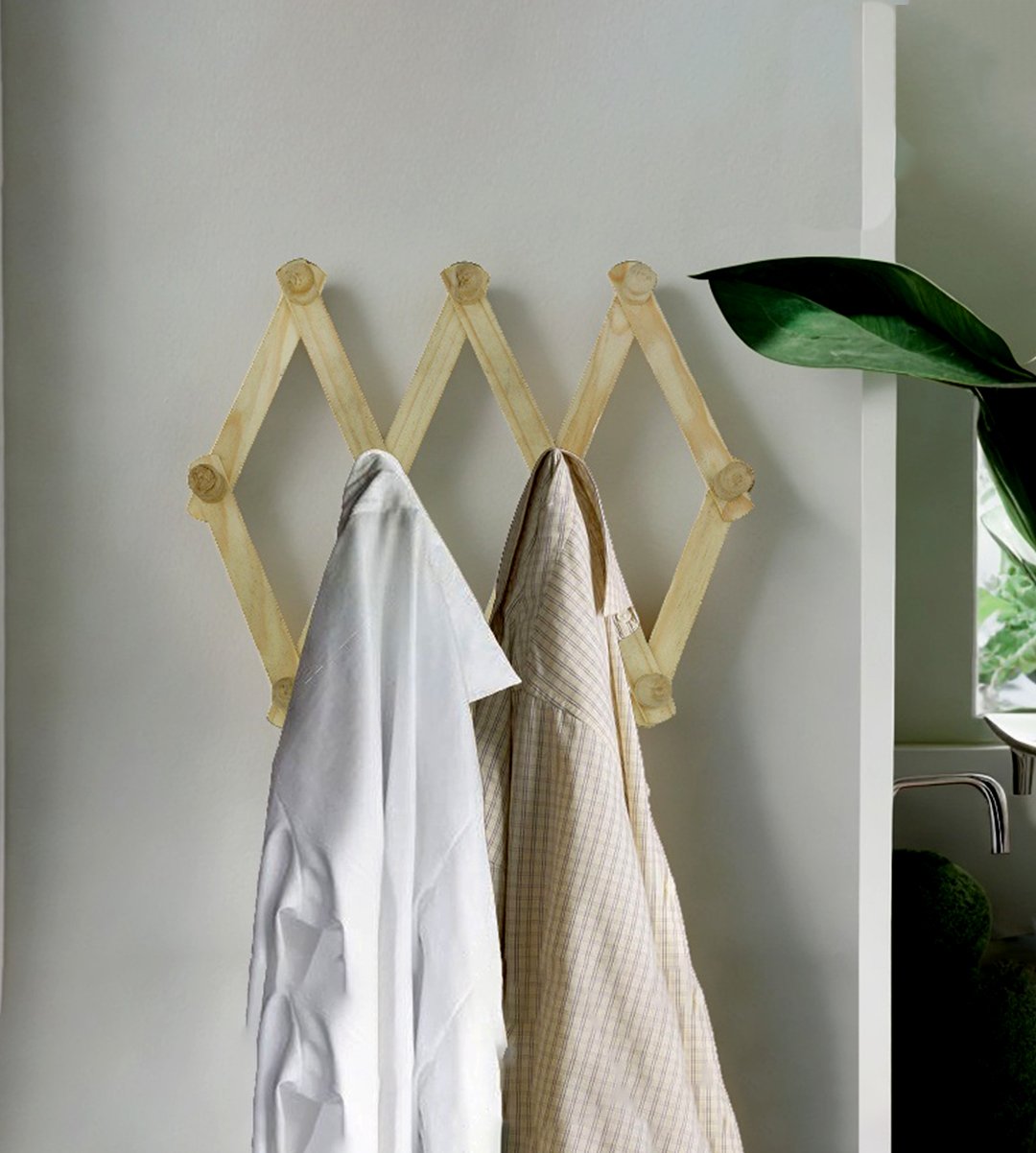 Stick wooden hanger to hang cloths, garment, hat, handbag, cap, hanky etc. It is made up of eco-friendly wood with convient circle hooks on it. It is stick on home walls / door walls and can be push and pull forward and backward according to their convenience. Can be hang garment, hat, handbag, cap, hanky etc. We have brought you such wooden hangers to choose from. Grab it now. Gift it to your family and friends.