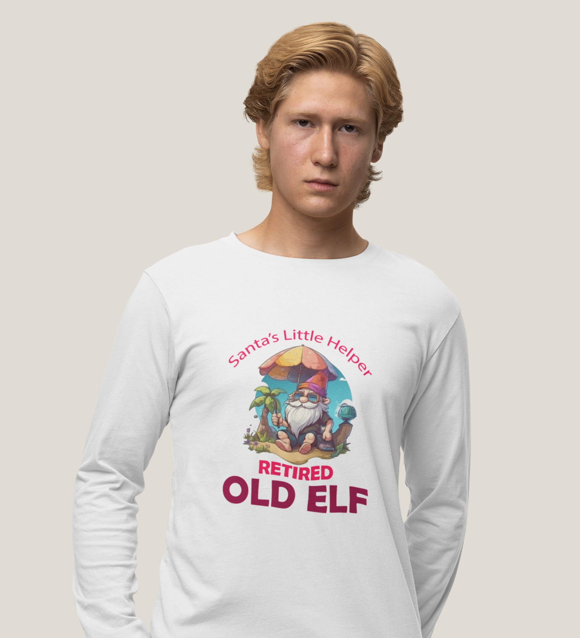 Elderly Elf: White Retired Santa's Elf Made Full Sleeve Tshirt by Best Gift For Secret Santa