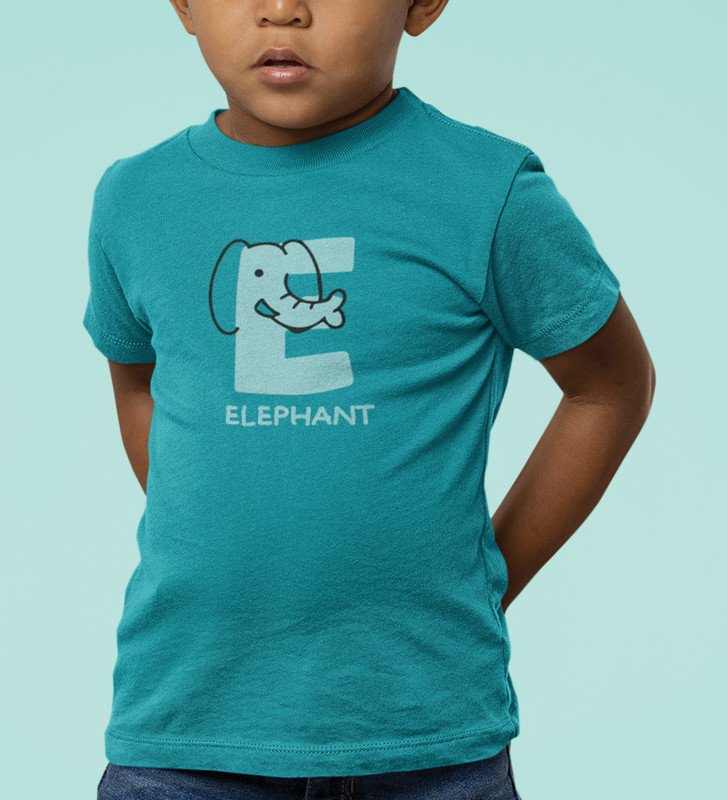 Elephantastic, Boys Round Neck Blended Cotton Tshirt (Teal)