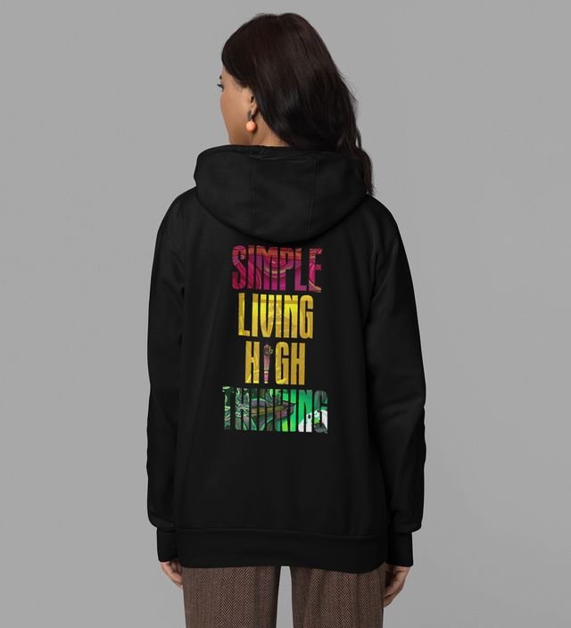 Elevate the Mind Simple Living High Thinking Black Cotton Printed Hoodie For Women