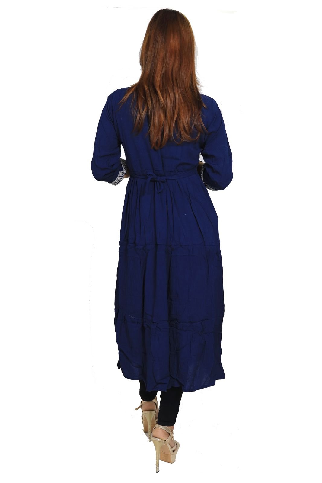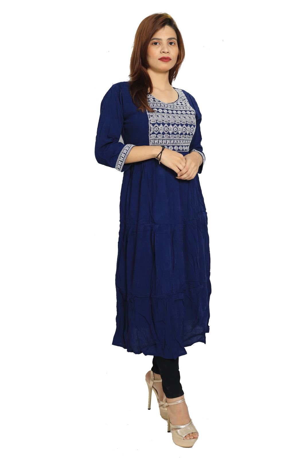 Chain curved square embroided straight Kurti for Womens/ girls (Blue)- Made up of Rayon and designed for you plesant and comfy