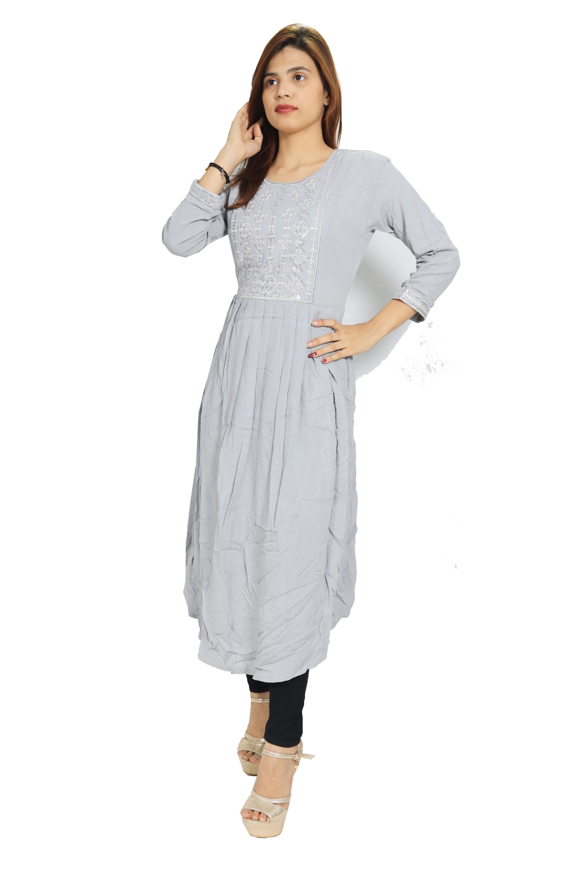 Barfi square chained embroided straight Kurti for Womens/ girls(Grey)- Made up of Rayon and designed for you plesant and comfy